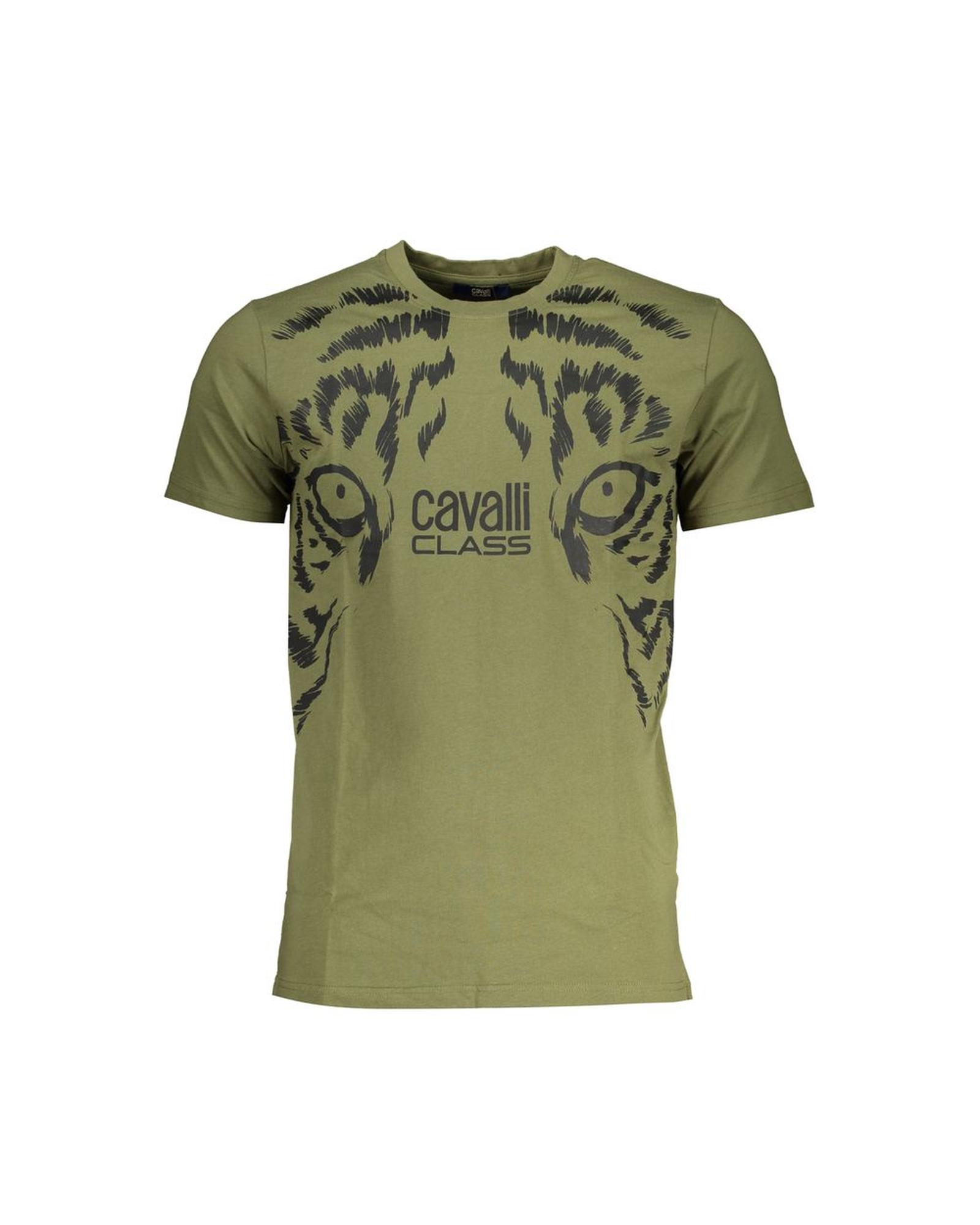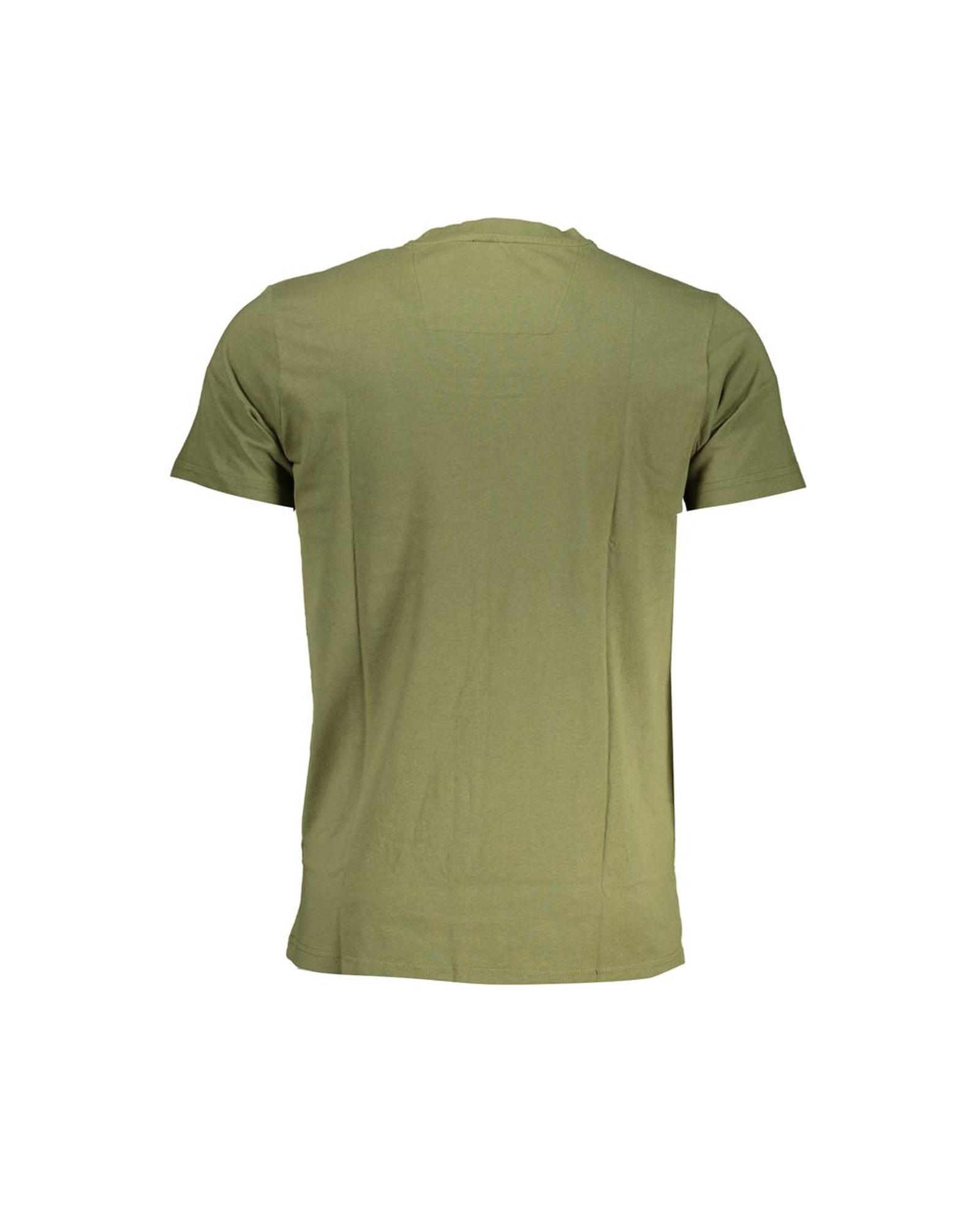This men’s short-sleeved T-shirt features a classic crew neck design with a printed logo and graphic pattern. Made from 100% cotton, it offers comfort and style for everyday wear. The shirt is available in size L, as indicated on the tag.