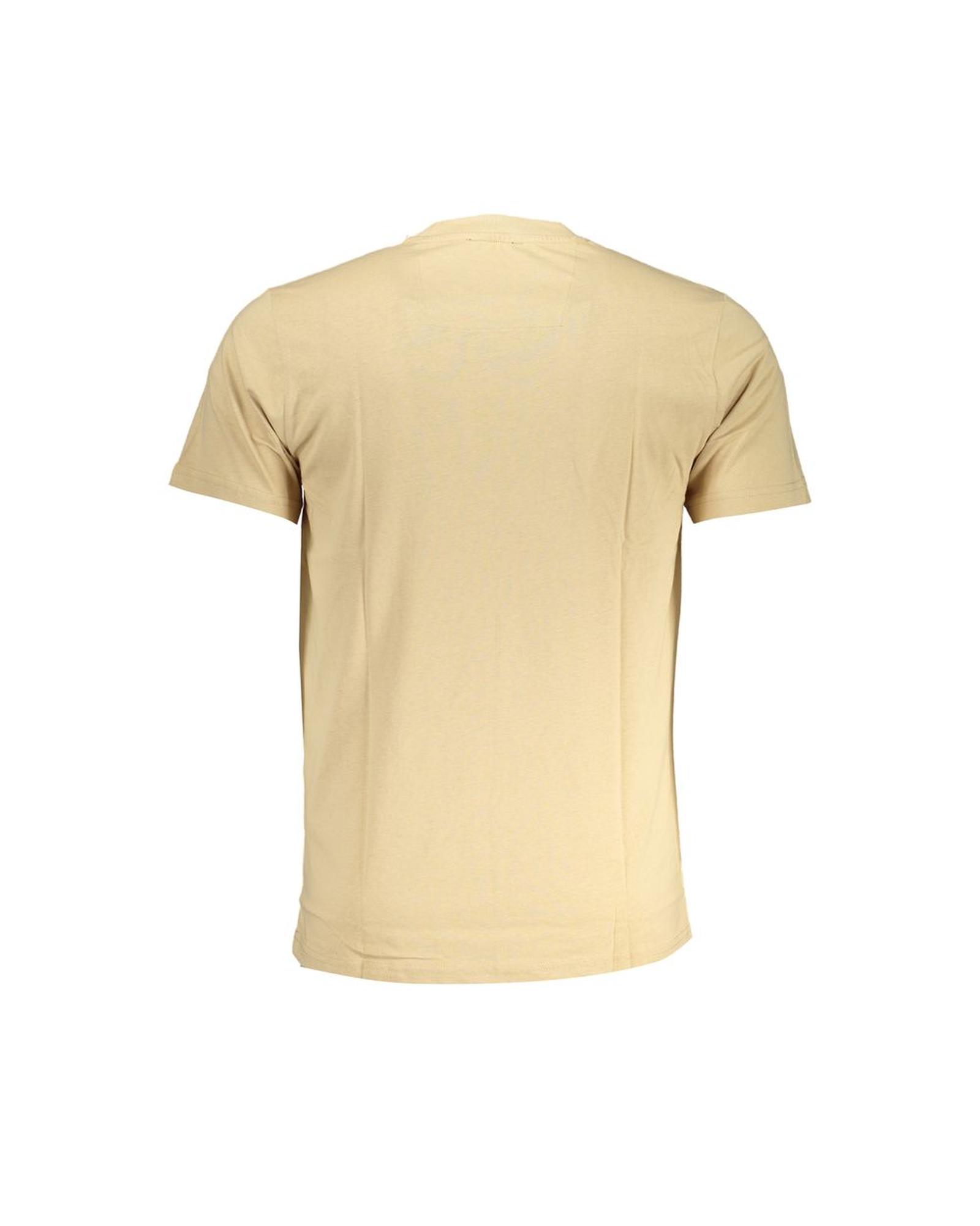 This men’s beige cotton T-shirt features a classic crew neck design with short sleeves. It is made from high-quality cotton, offering comfort and breathability for everyday casual wear. The shirt is decorated with a print and logo, making it suitable for fashion-forward men.
