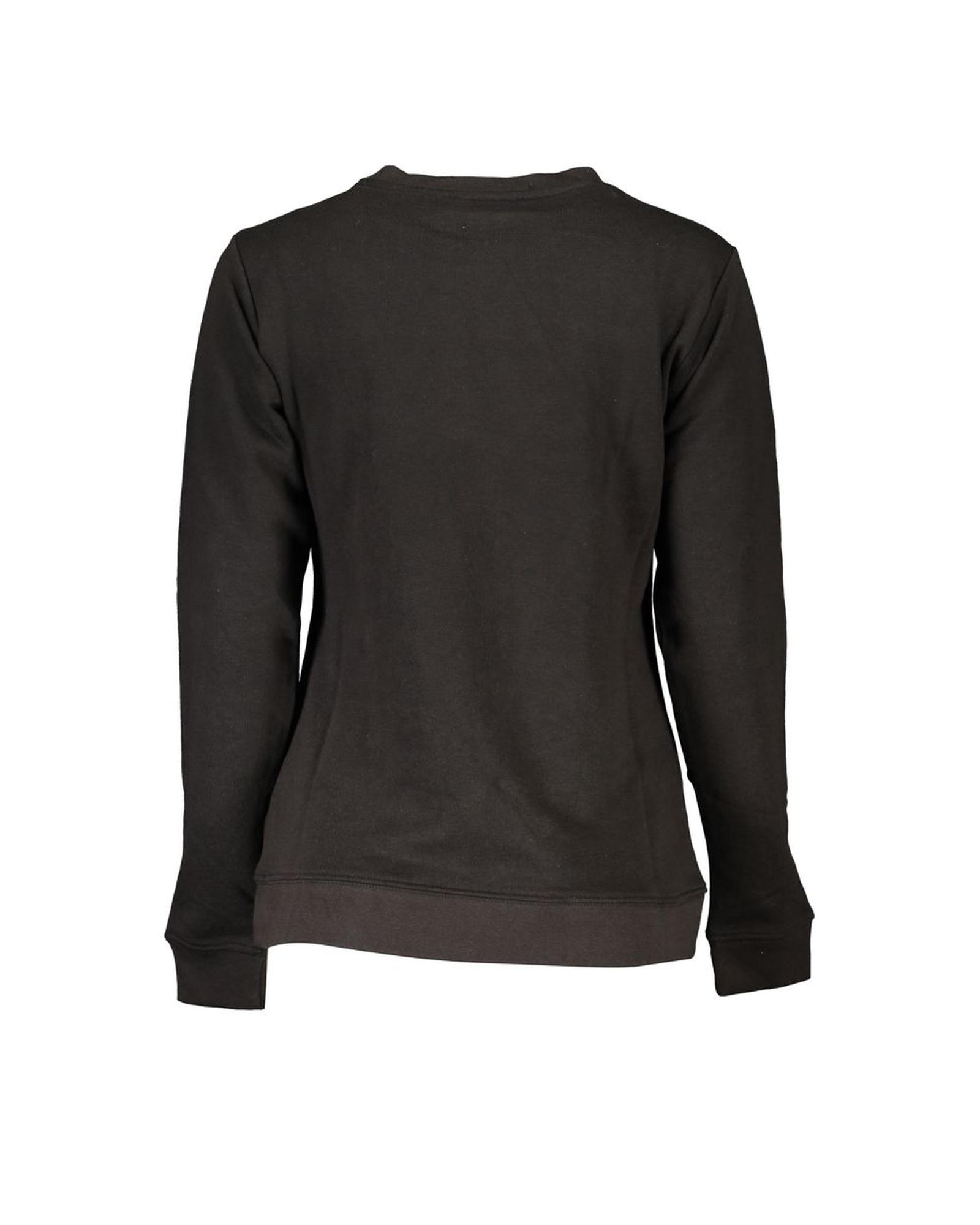 This women’s black cotton sweater offers a comfortable and stylish option for everyday wear. Designed with a classic crew neck and long sleeves, it features a brushed interior for added softness. The sweater is accented with a print and logo, making it a versatile addition to any wardrobe.
