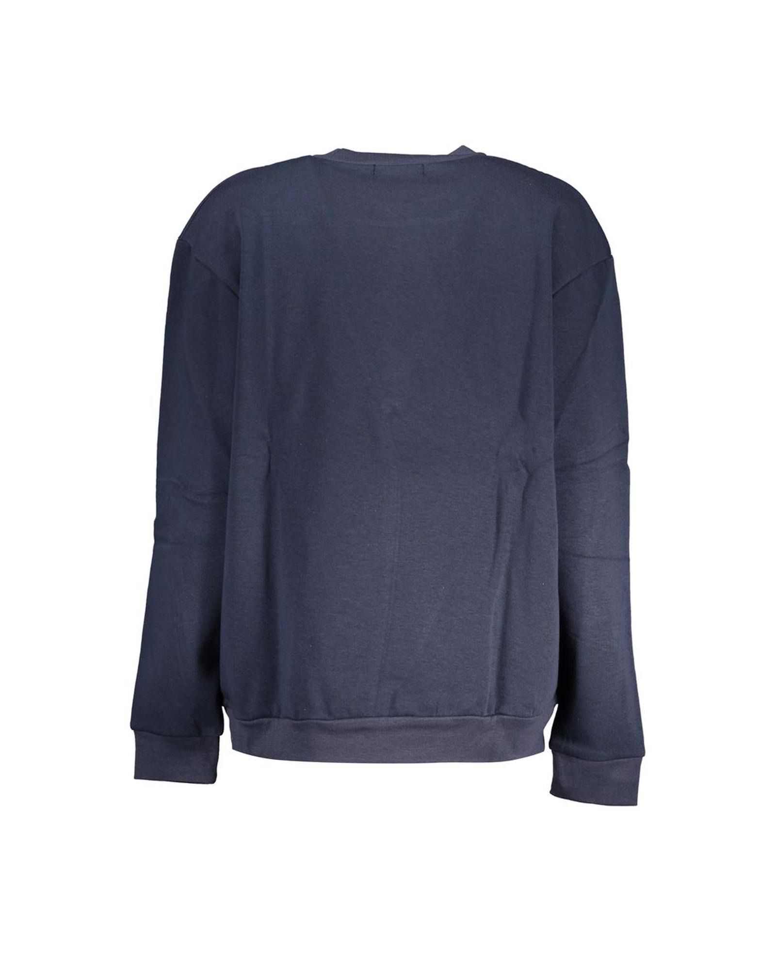 This women’s blue cotton sweater is a stylish and comfortable addition to any wardrobe. Crafted from a soft fleece material, it offers warmth and ease of wear. The long-sleeved design features a classic crew neck and detailed embroidery with a logo, making it suitable for casual or semi-casual occasions.