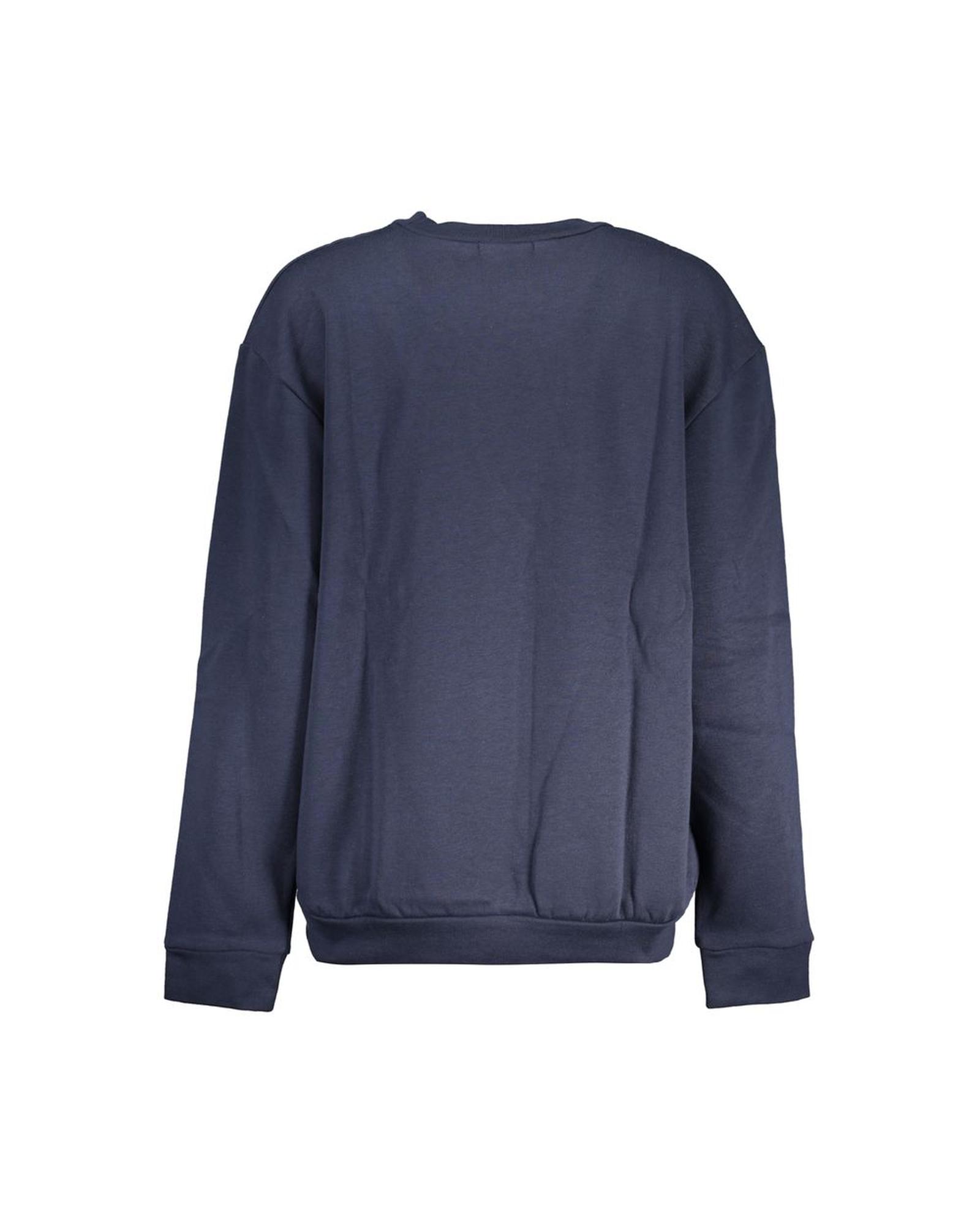 This women’s blue cotton sweater offers a comfortable and stylish option for everyday wear. Crafted from a soft fleece material, it features a classic crew neck and long sleeves, making it suitable for various casual occasions. The sweater is designed with a fashionable print and logo, adding a touch of style to your wardrobe.