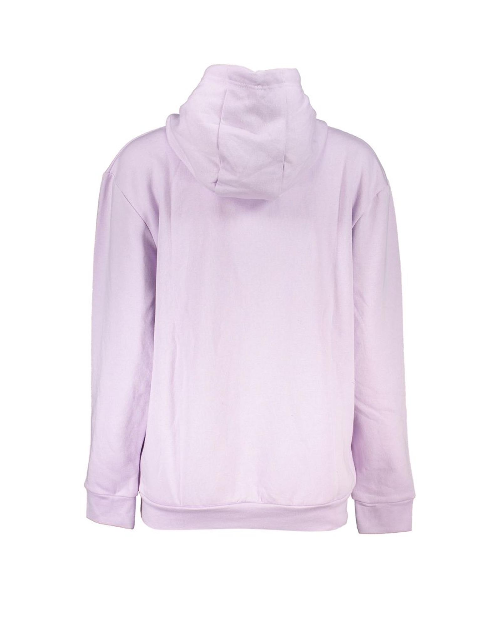 This women’s purple cotton sweater features a comfortable and stylish design suitable for casual wear. It combines a cozy fleece interior with a fashionable printed design and logo detail, making it a versatile addition to your wardrobe.