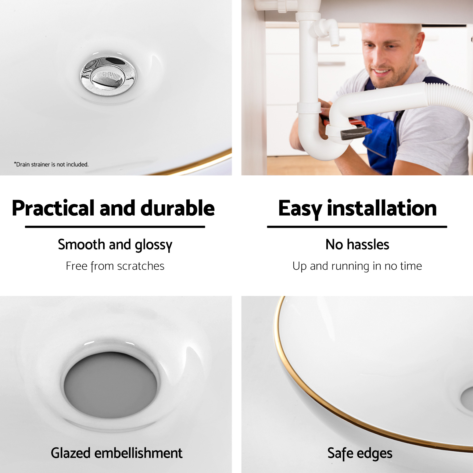 Cefito Bathroom Basin Ceramic Vanity Sink Hand Wash Bowl Gold Line 41x34cm