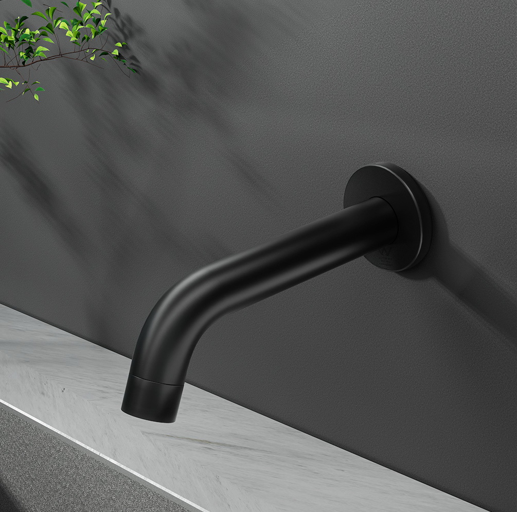 This wall-mounted bath spout adds a modern and elegant touch to your bathroom decor. Designed with a sleek black finish and solid brass construction, it combines style with durability. The multi-layer finishing process ensures a high-quality appearance, while the anti-splash aerator provides a smooth and evenly pressured water stream. Its durable design offers long-lasting performance, making it a practical choice for enhancing your bathroom’s functionality and aesthetic appeal.