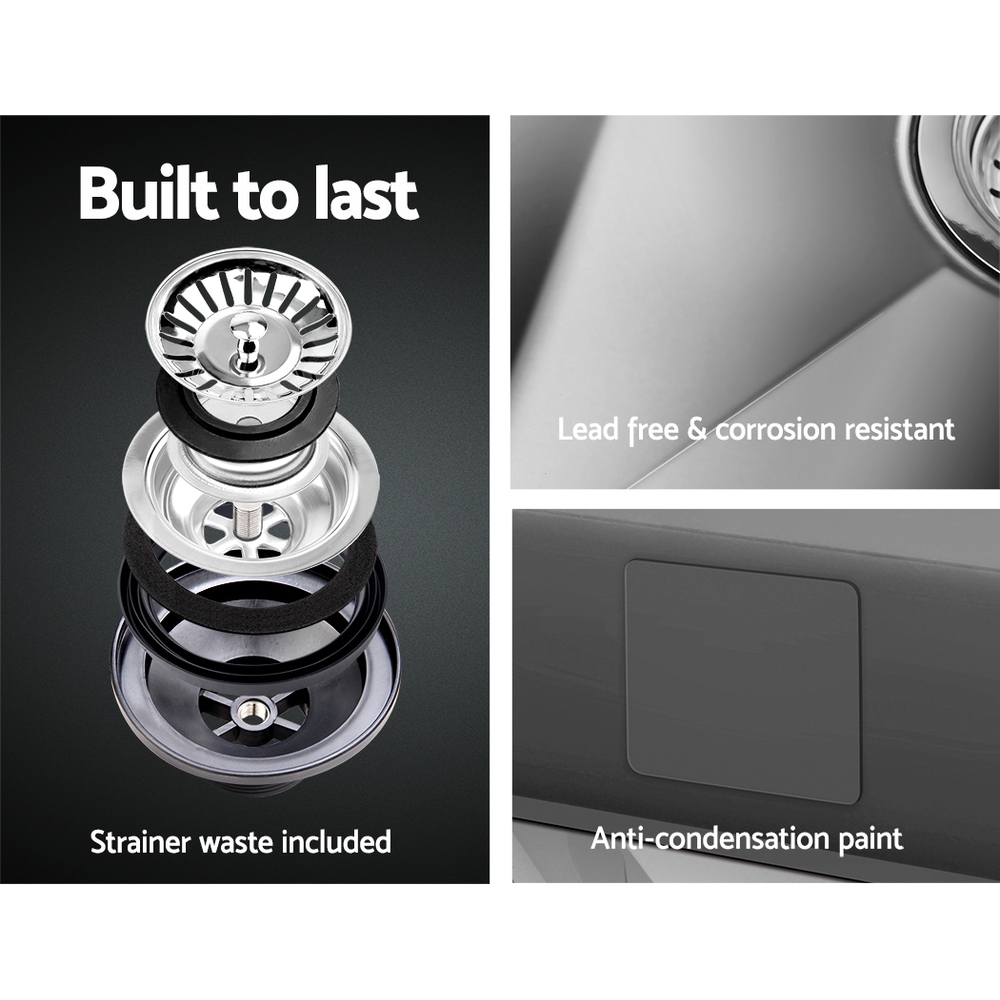 The stainless steel kitchen sink features a durable construction with a sleek satin finish, designed for easy cleaning and modern aesthetics. It offers a deep, wide bowl with rounded corners for safety and convenience, along with an efficient drainage system. Suitable for various installation types, it combines practicality with quality craftsmanship.