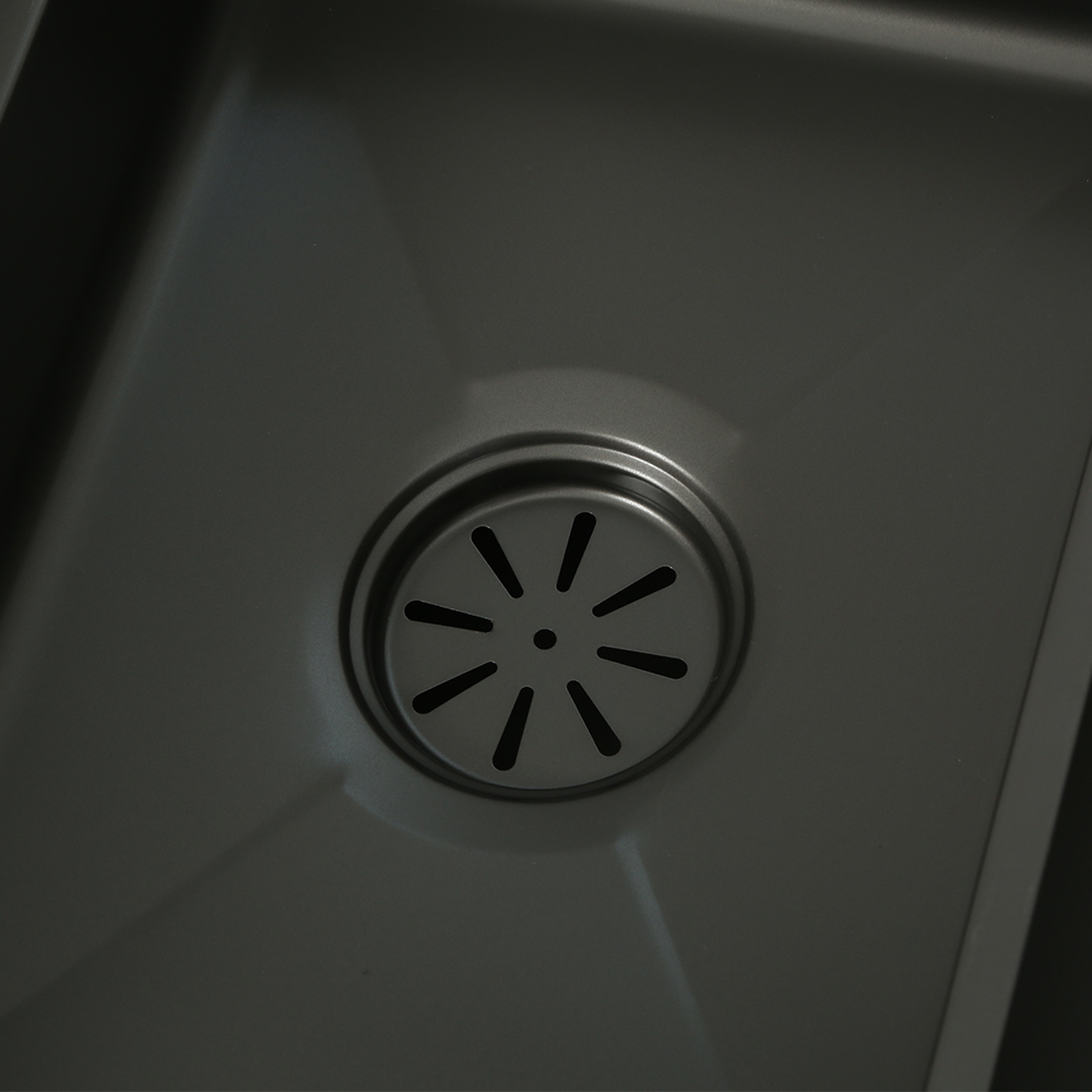 This stainless steel kitchen sink features a durable construction with a sleek, modern design. It is suitable for various installation types and includes practical features for everyday use, making it an ideal addition to any kitchen.