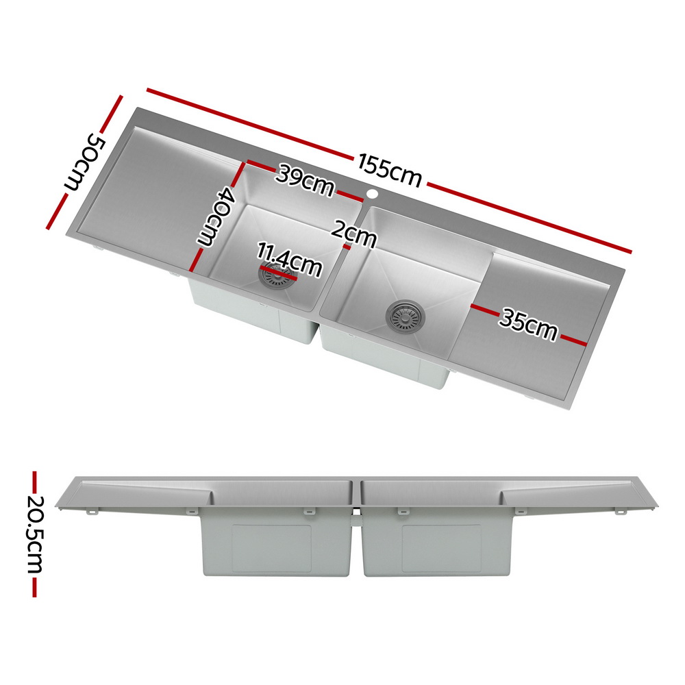 Cefito Kitchen Sink Basin Stainless Steel Under/Top/Flush Mount Bowl 155X50CM