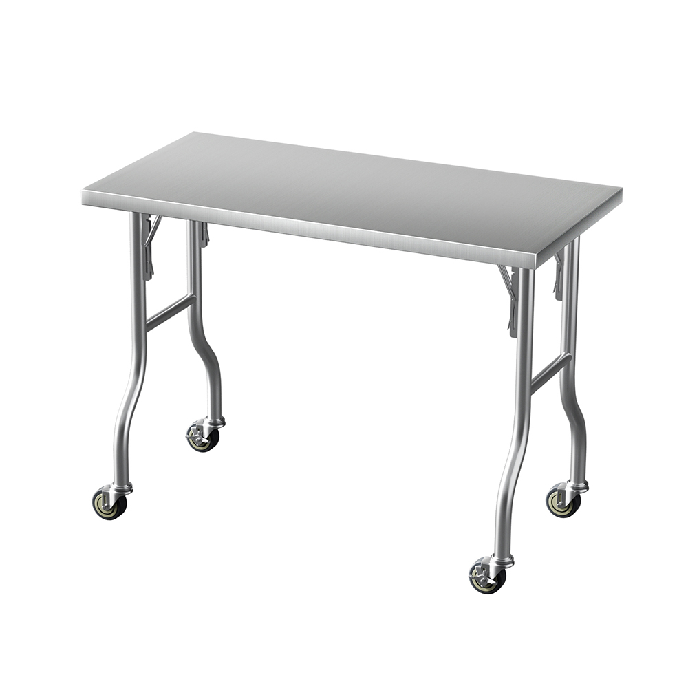 This stainless steel kitchen bench offers a versatile and durable workspace solution that can be easily moved to different locations as needed. Its foldable legs and lockable castor wheels make it convenient to transport and position, providing extra storage and work surface in various settings. Constructed from high-quality stainless steel, it ensures long-lasting performance and resistance to corrosion, making it suitable for food preparation, display, and other applications.