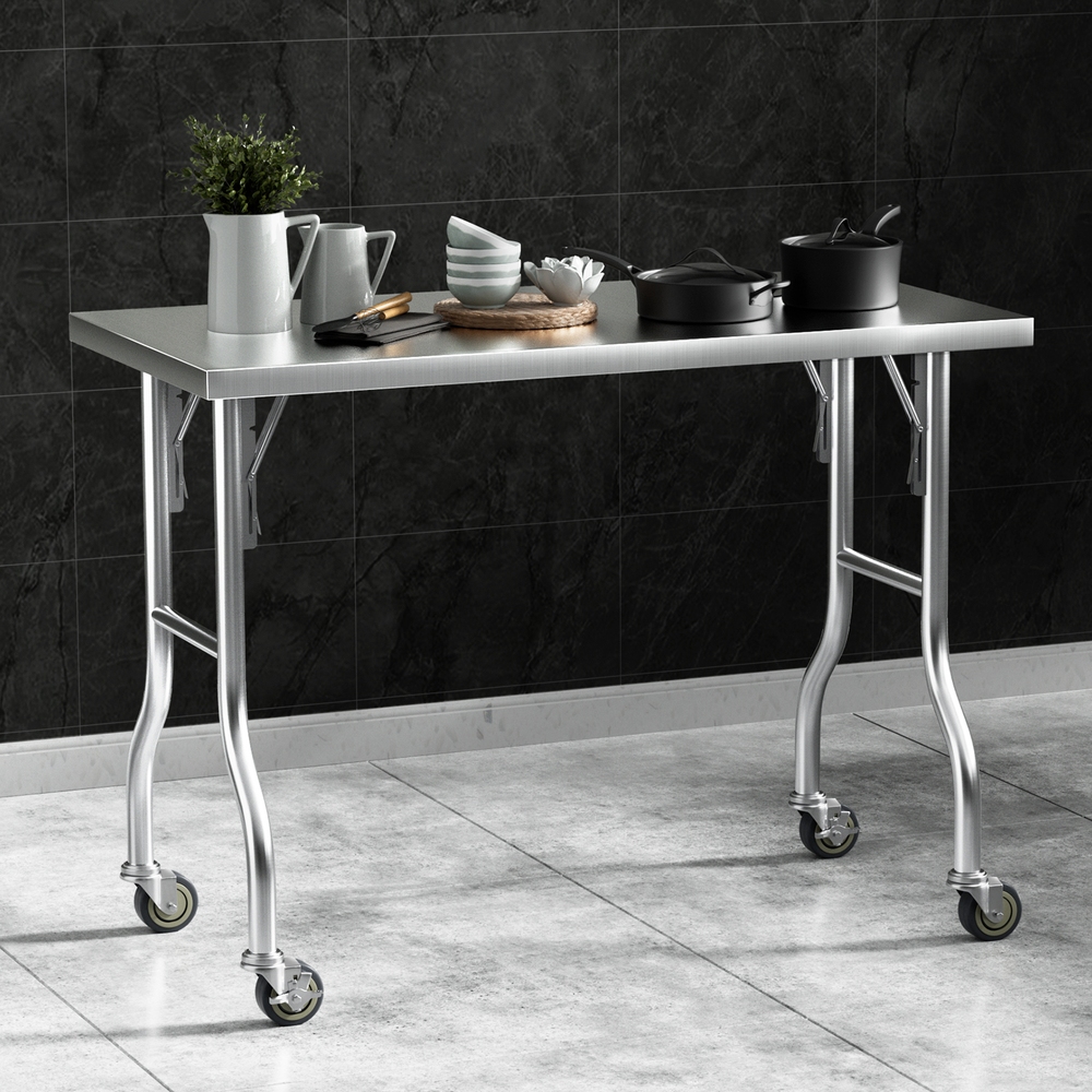 Cefito Stainless Steel Kitchen Benches Work Bench Wheels 122X61CM 430