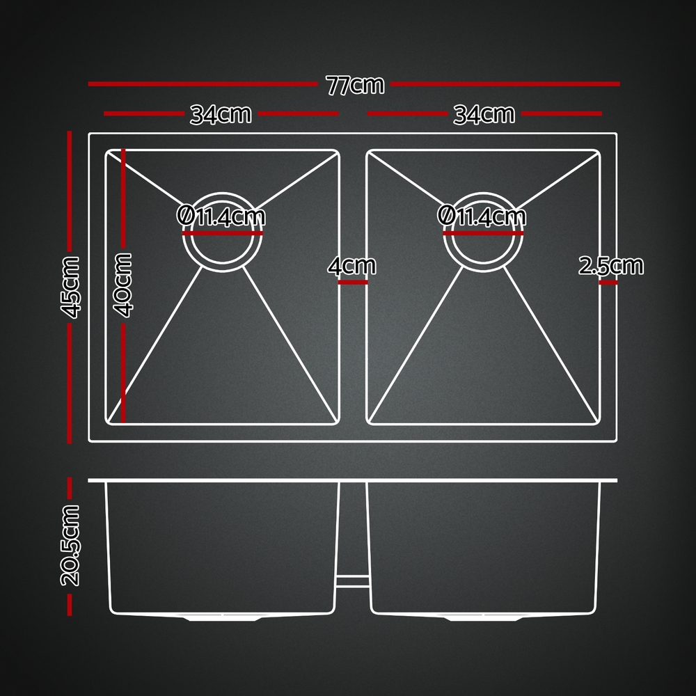 Cefito Stainless Steel Sink 77x45CM With Pull Out Mixer Tap Kitchen Double Bowl Black