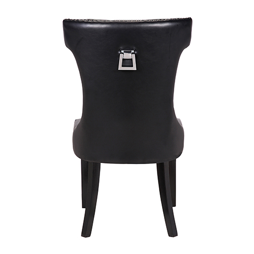 This dining chair features a stylish design with a curved backrest and decorative accents. It is upholstered with high-quality materials and provides comfortable support, making it a suitable addition to any dining space.
