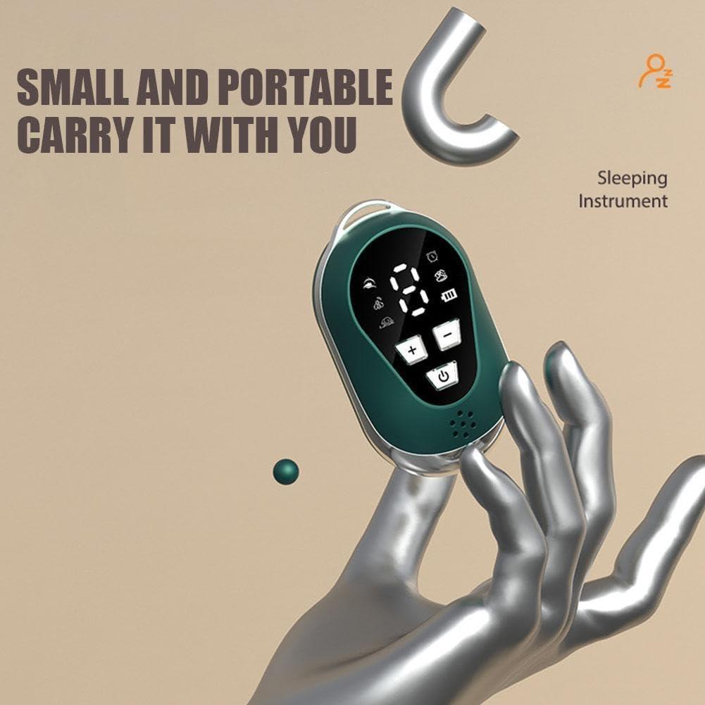 This handheld sleep instrument utilizes low-frequency pulse therapy to assist with falling asleep. It offers deep massage and relaxation through a double pulse cycle waveform. Designed for convenience, it features a simple one-button operation, a portable suspension design, and a long-lasting battery with a Type-C charging interface.