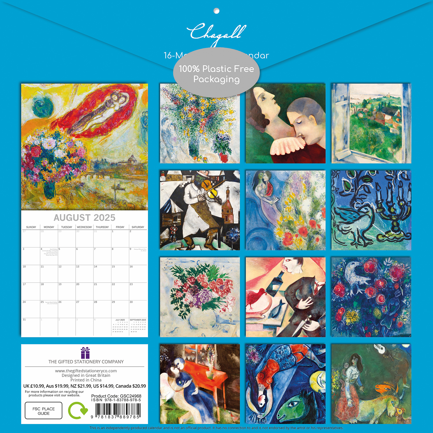 Chagall – 2025 Square Wall Calendar Arts 16 Months Premium Planner Gift
