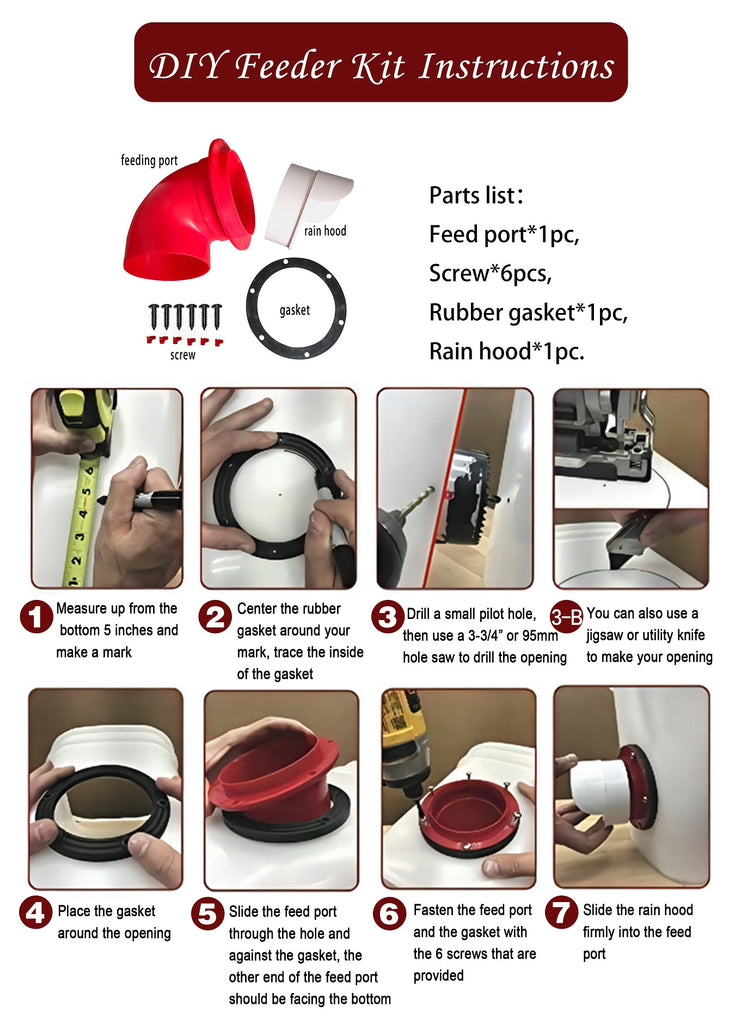 This product is a set of DIY poultry feeder ports designed to enhance feeding efficiency and convenience. Suitable for various poultry, it allows for customizable feeding solutions and helps keep feed dry and clean in outdoor environments.