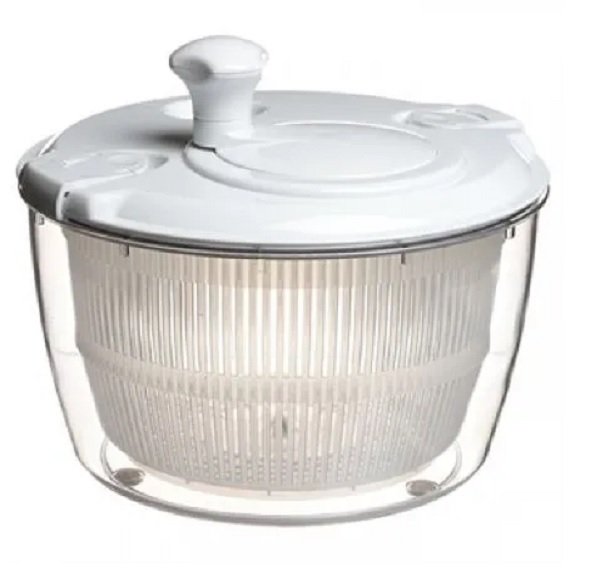 This salad spinner is designed to quickly wash and dry salad leaves and greens, making meal preparation more efficient. Its compact size and lightweight design make it easy to handle and store.