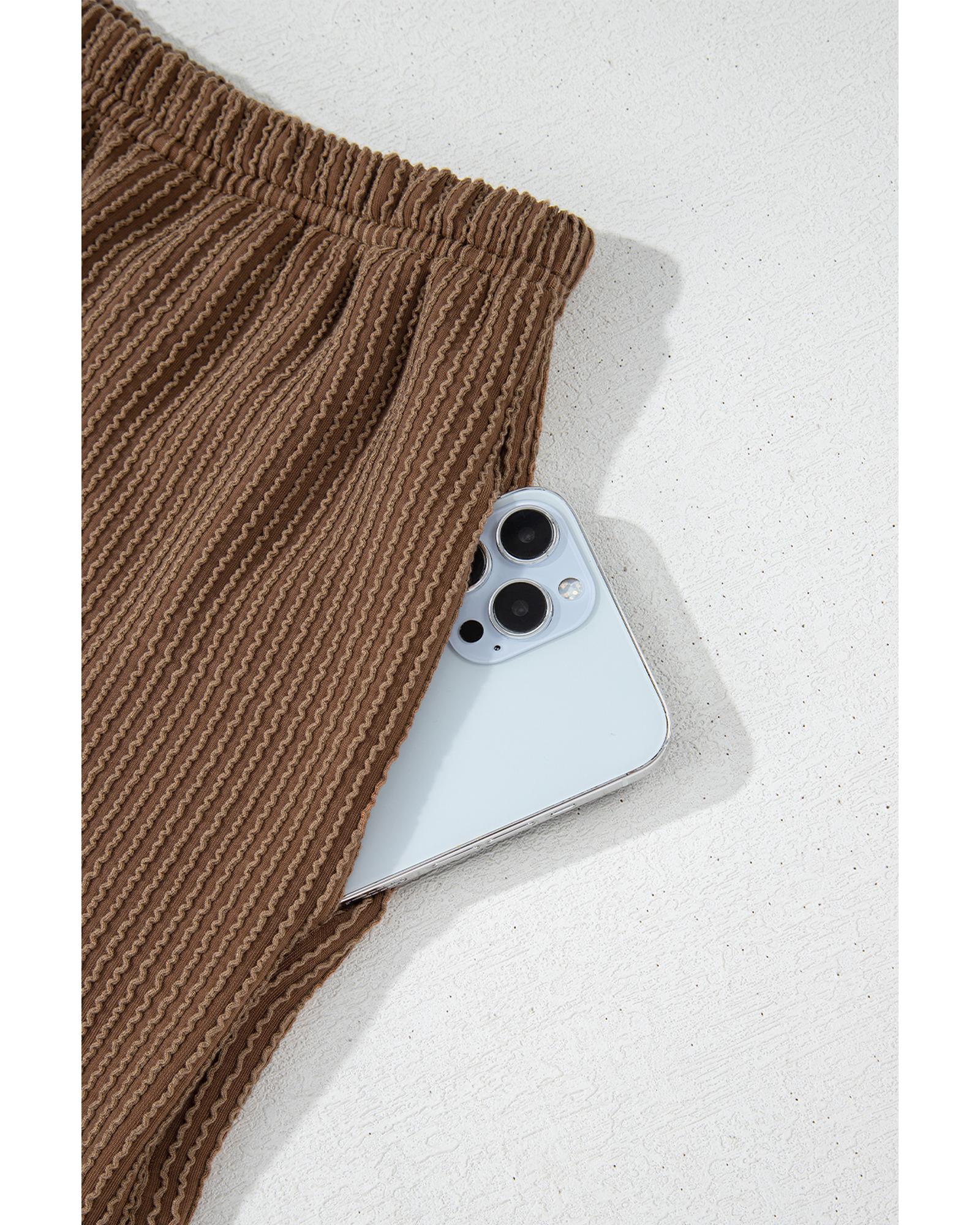 This set features a corded knit long sleeve top paired with high waist shorts, designed for a trendy and comfortable fit. The relaxed silhouette makes it suitable for casual outings or lounging, offering a chic and effortless style.