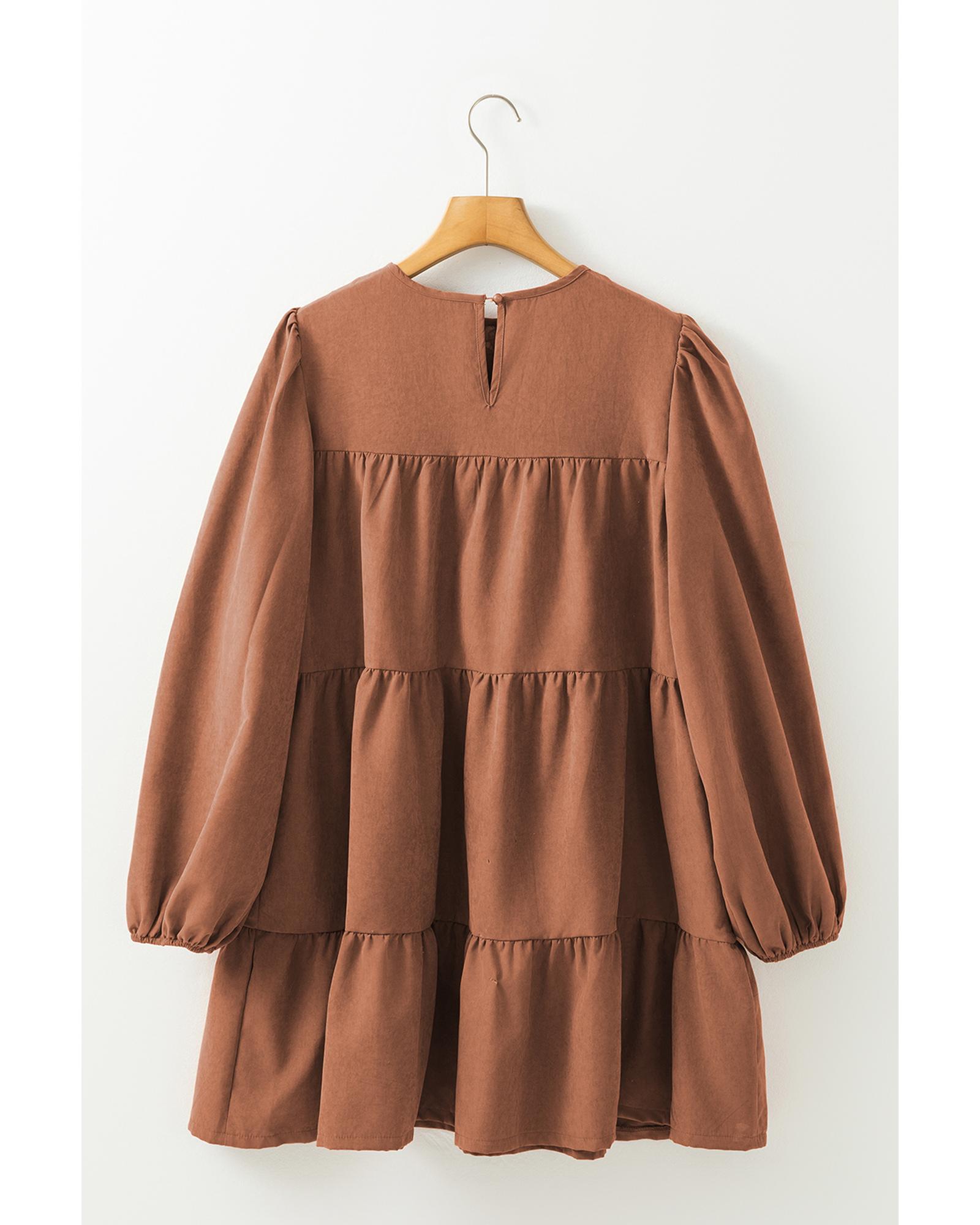 Chestnut Floral Lace Crochet Tiered Ruffled Mini Dress – XL