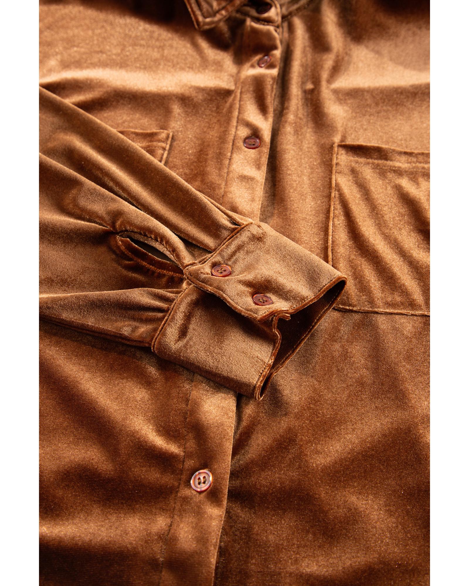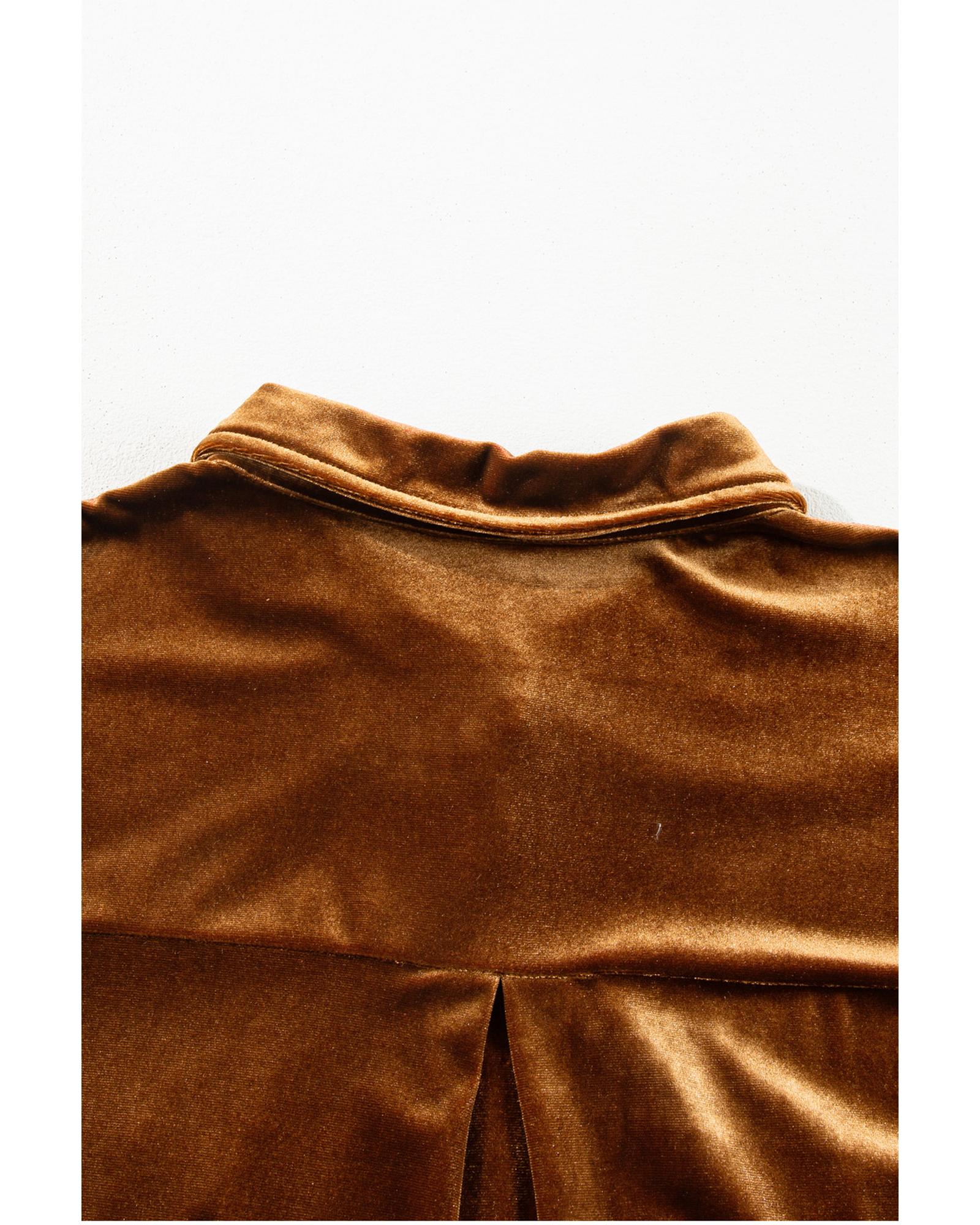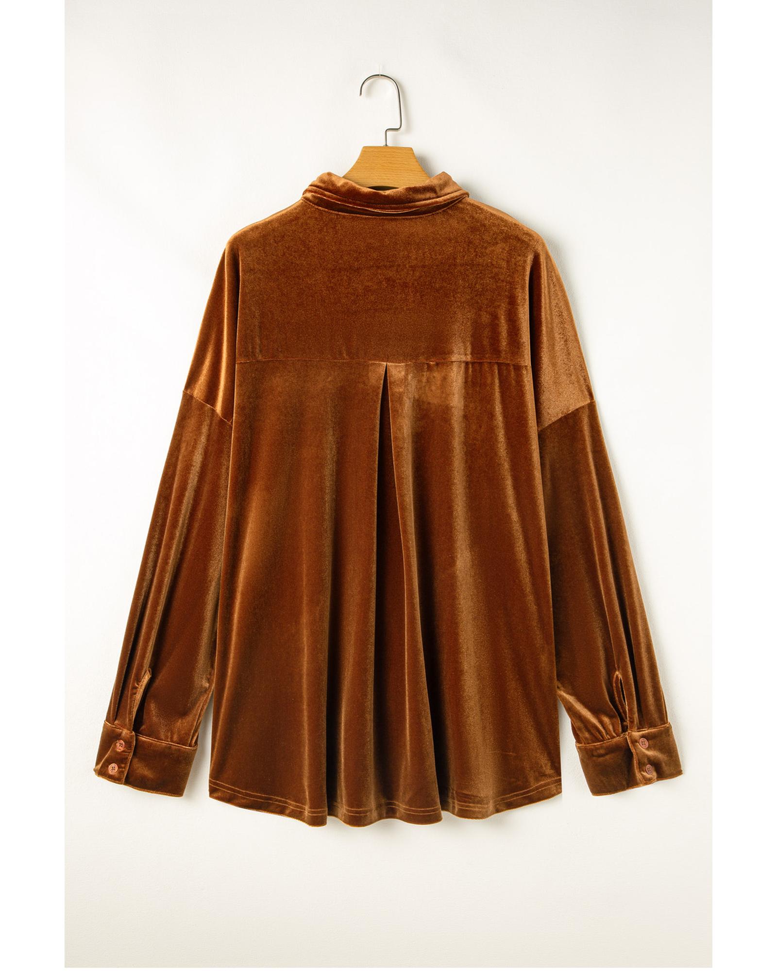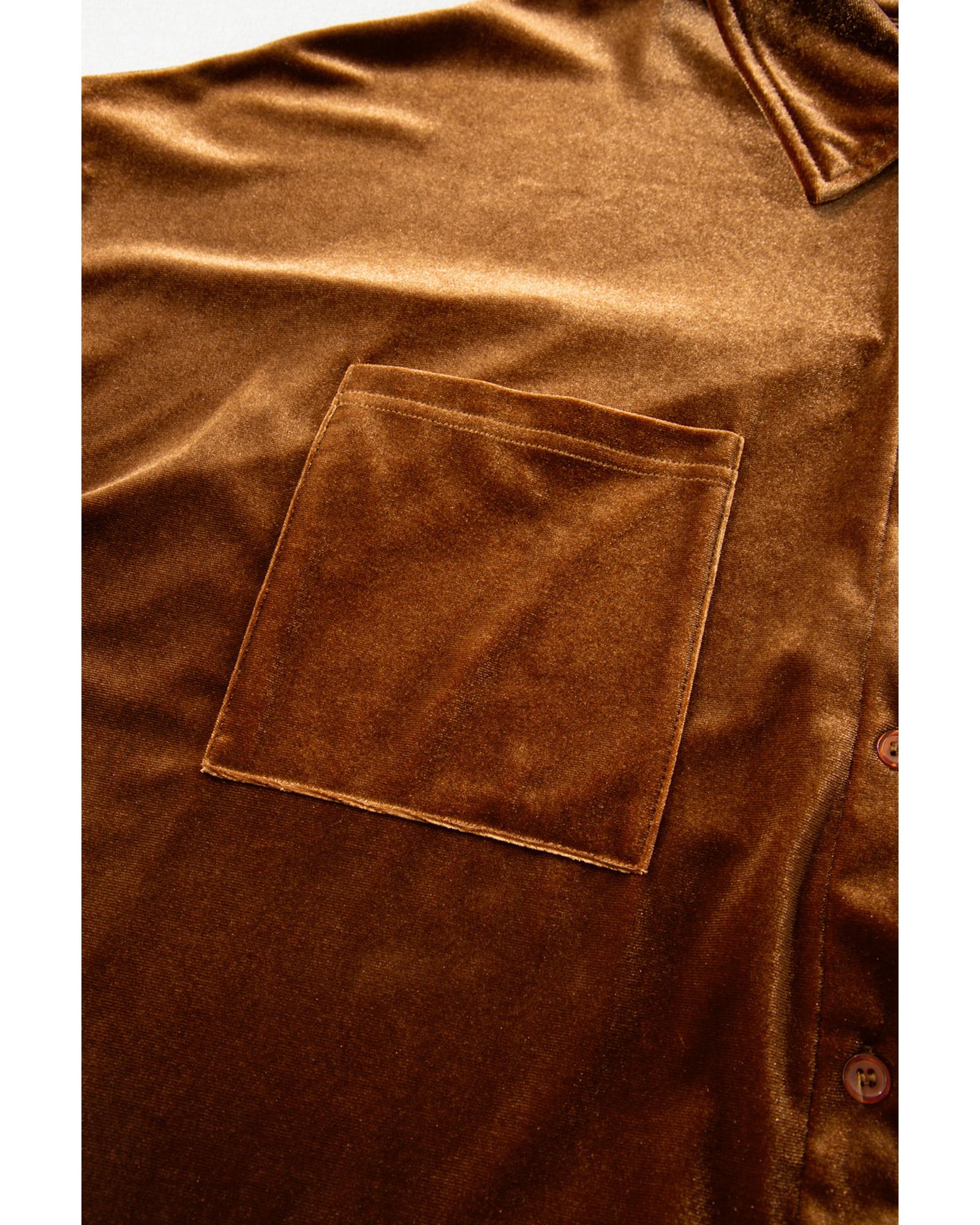 Chestnut Plus Size Velvet Chest Pocket Drop Shoulder Shirt – 1X