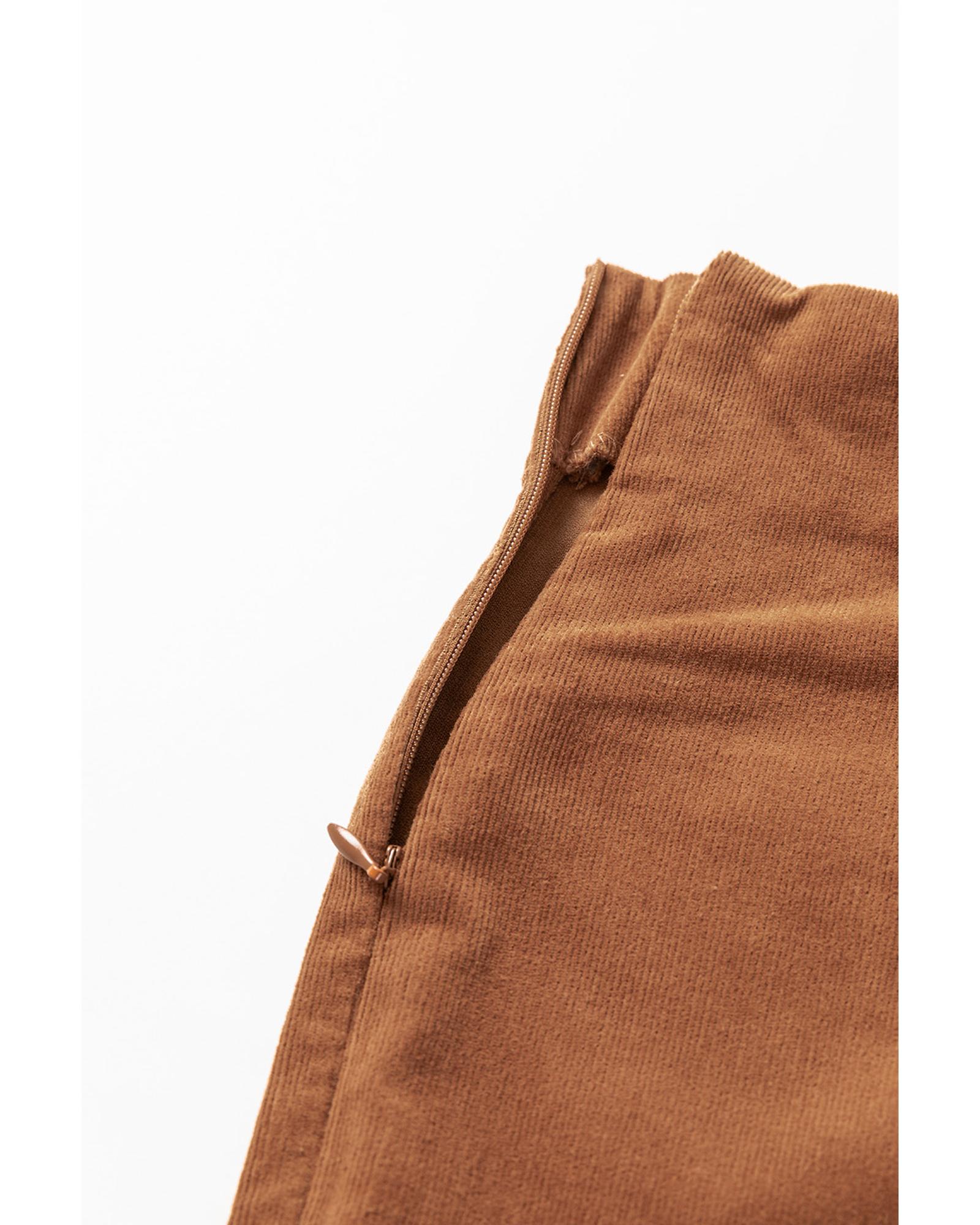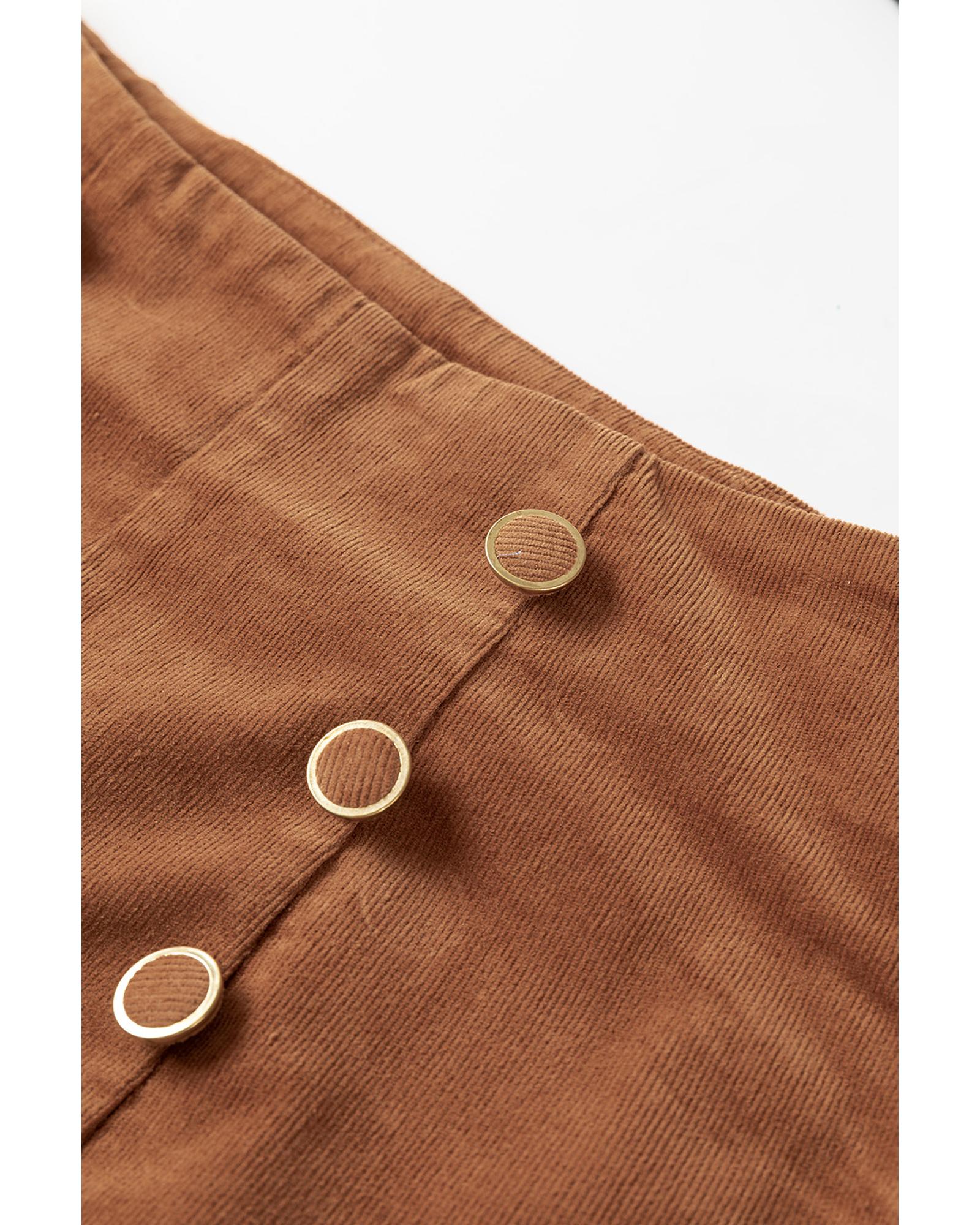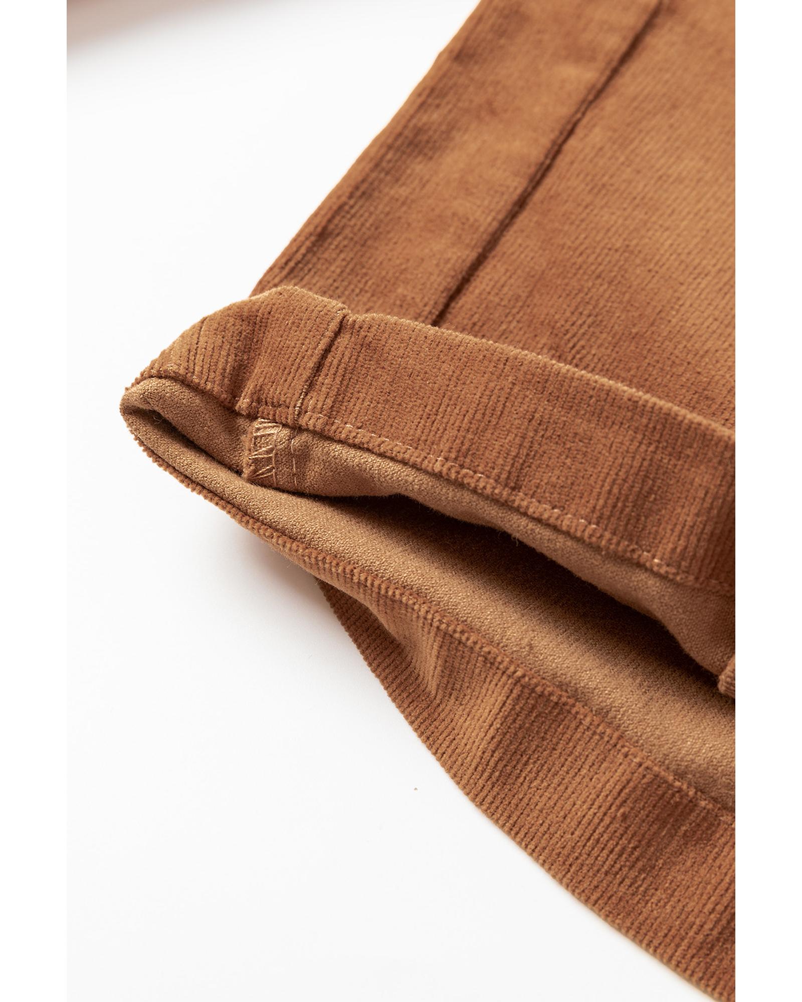 This pair of solid chestnut-colored pants features a double-breasted closure and a straight leg design, offering a classic and versatile silhouette. The high waist and medium elasticity provide a comfortable and modern fit suitable for various occasions.