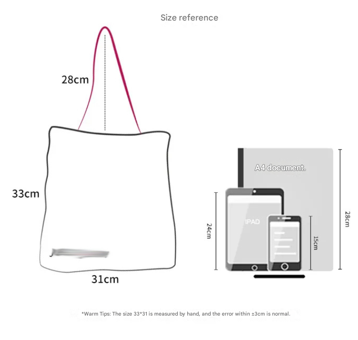 - Dimensions of 33x31cm, ideal for carrying essentials
