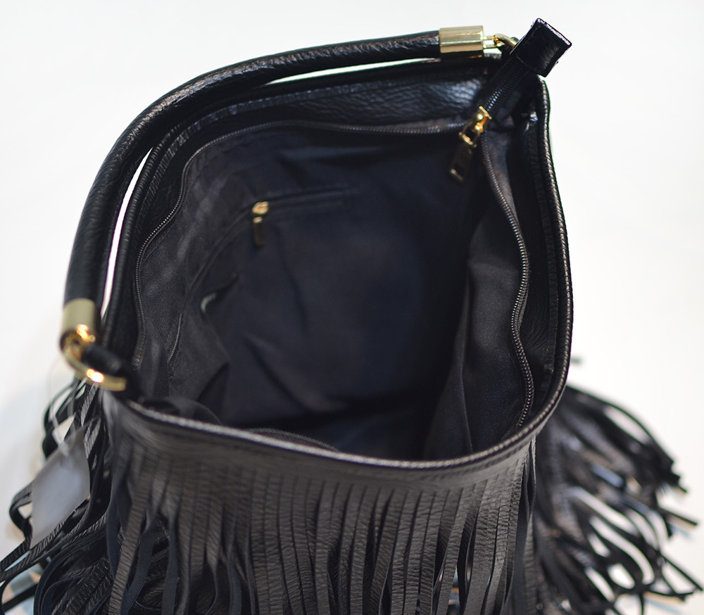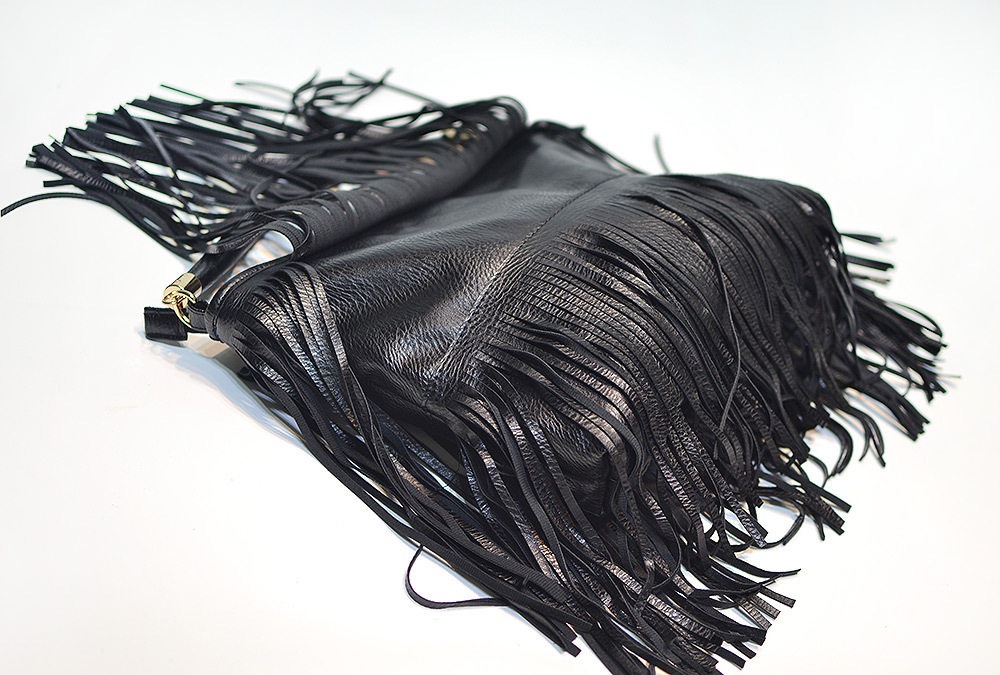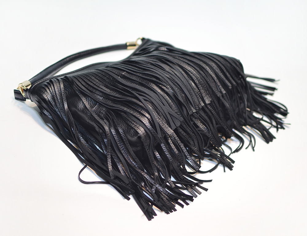 - 1 x Black Double Fringe Hobo Bag
