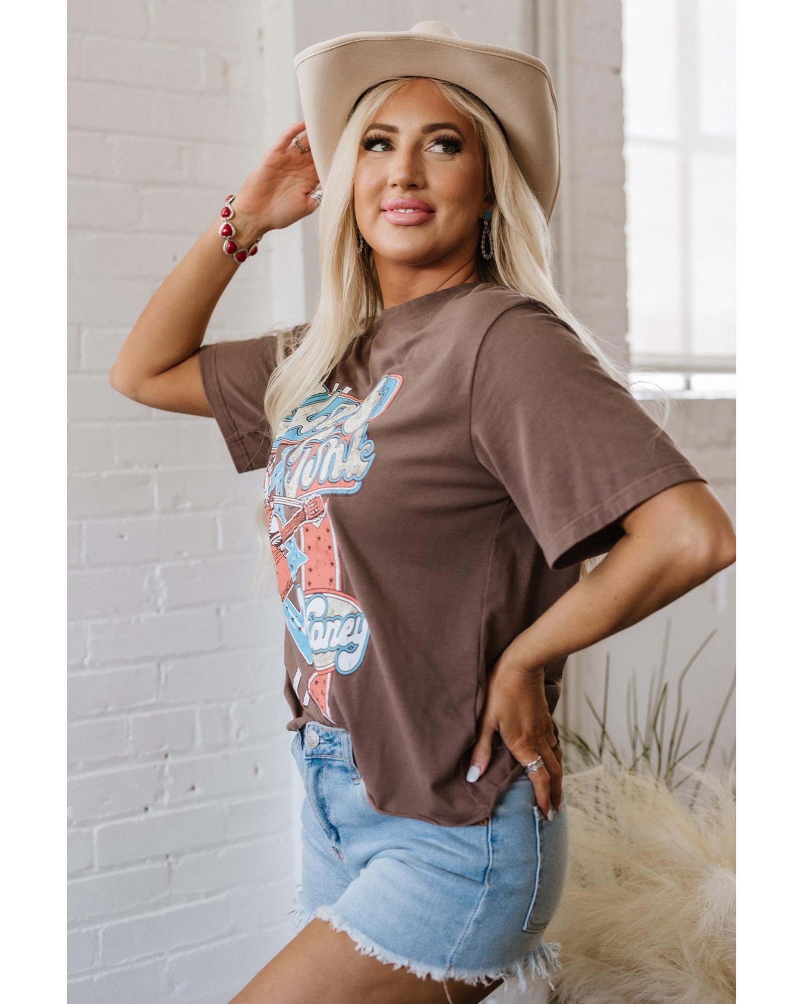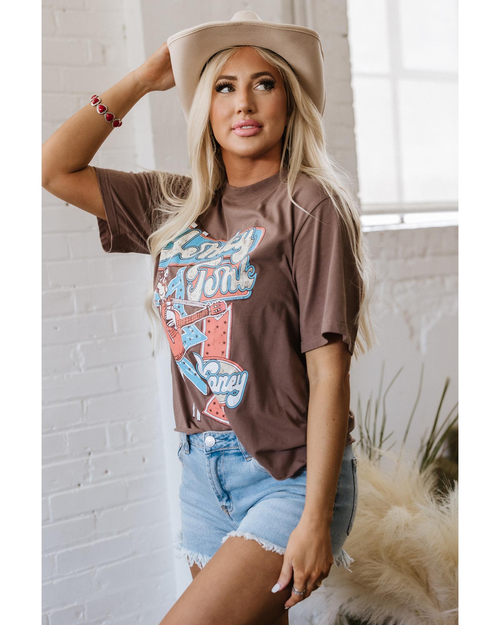 Chicory Coffee Honky Tonk Honey Graphic Crew Neck Western Fashion Tee – XL