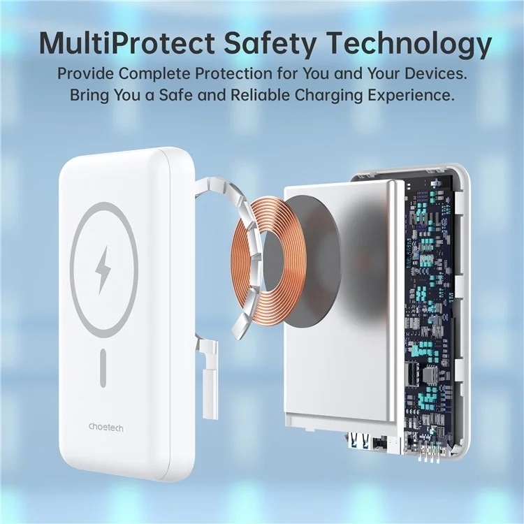 CHOETECH B662-WH USB-A + USB-C + Wireless Magnetic Power bank 5000mAh (White)