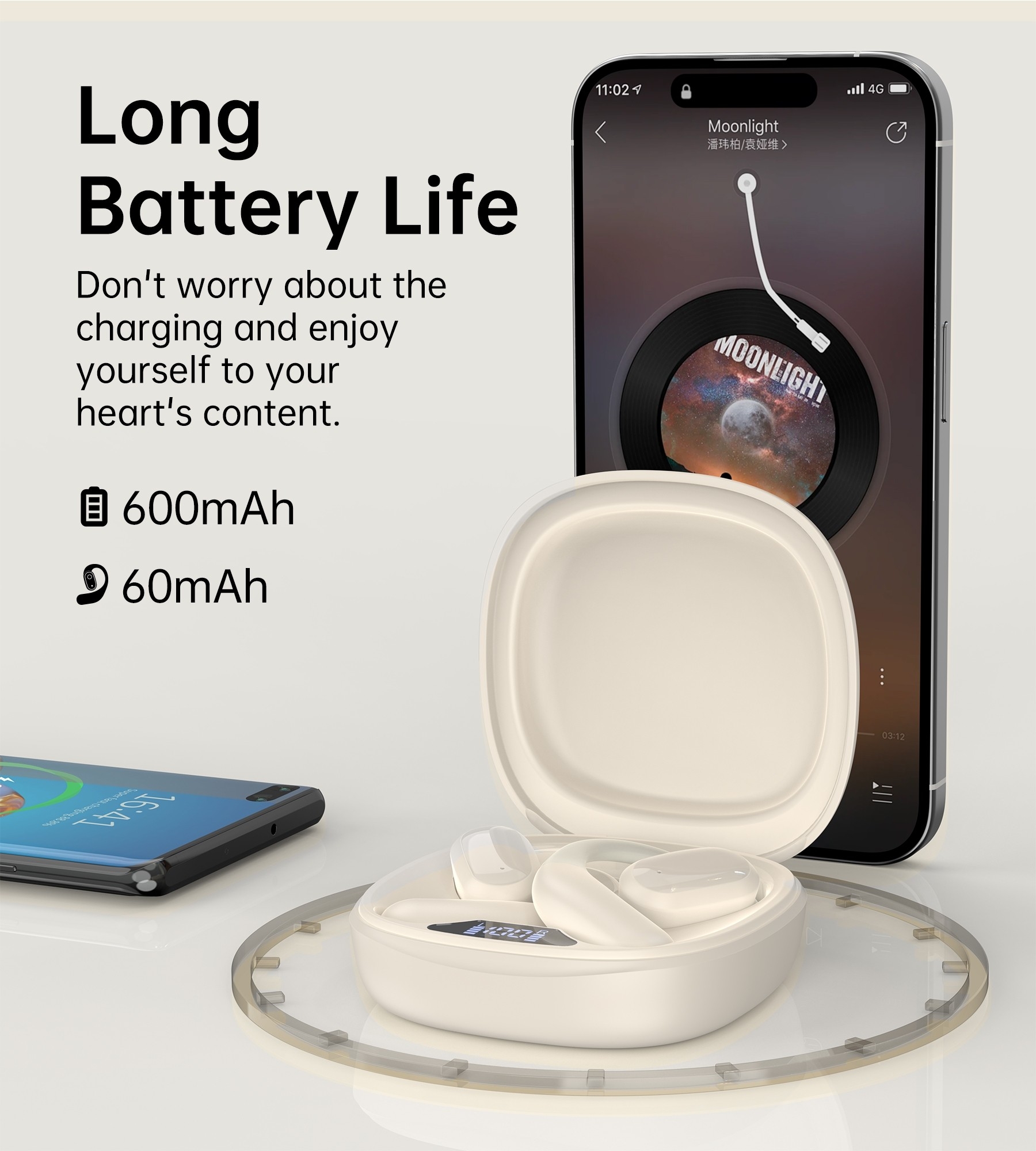 - Battery capacity: 30mAh per earbud, 300mAh charging case