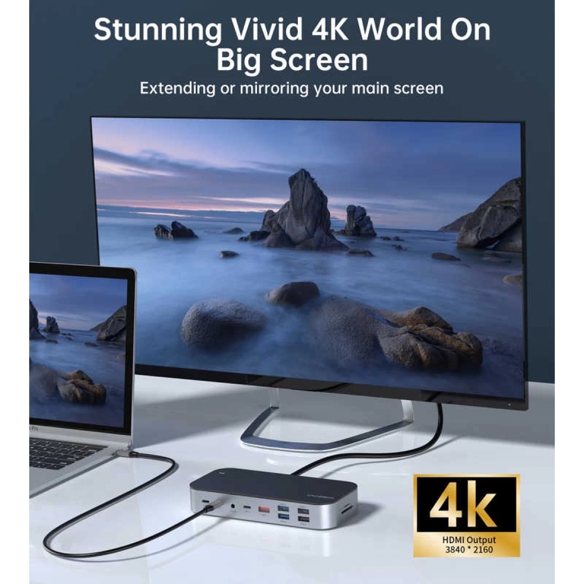 This 15-in-1 USB-C docking station transforms your laptop into a versatile workstation by providing multiple connectivity options. It supports various display outputs, fast data transfer, and network connectivity, making it ideal for professional and personal use.