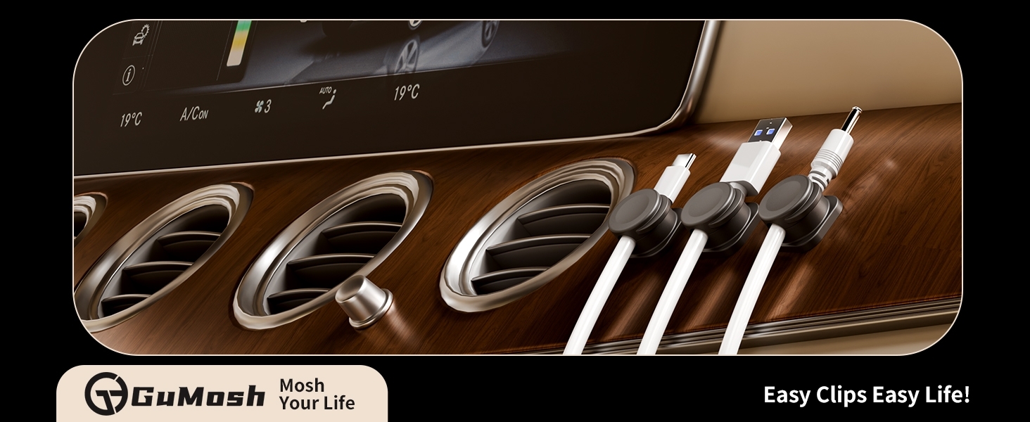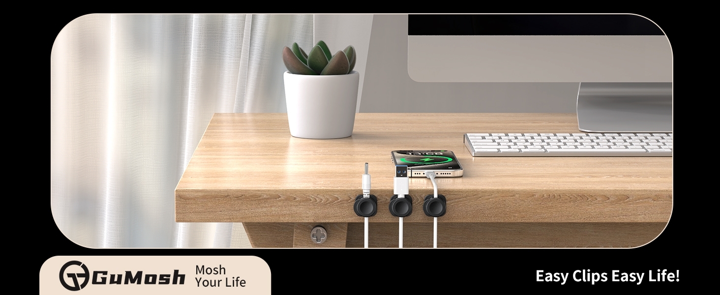 This cable management organizer set includes six magnetic lock cord holder clips designed for versatile and secure wire organization. The clips feature a wider cable slot diameter, accommodating a variety of cable sizes and types, making it suitable for home, office, and travel use.