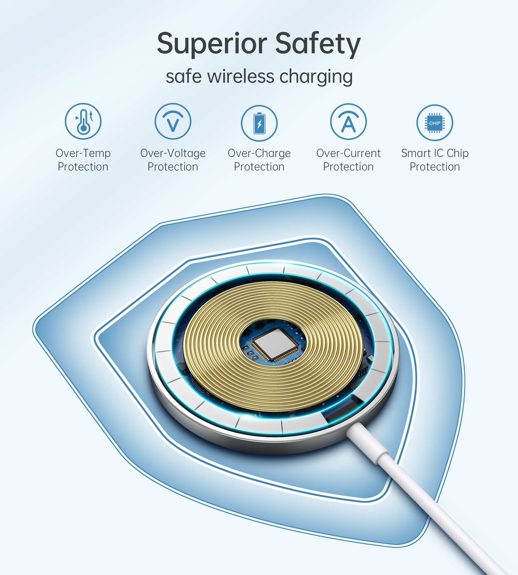 • Supports charging up to 15W with multiple modes including 15W, 10W, 7.5W, 5W, and 2.5W