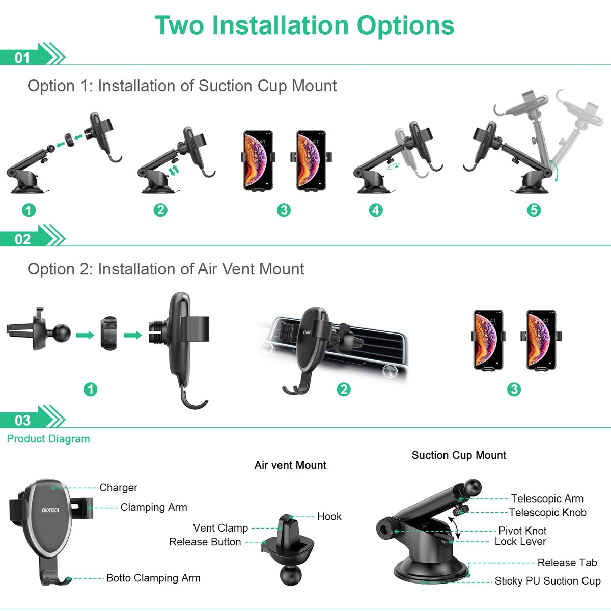 CHOETECH T536-S Fast Wireless Charging Car Mount Phone Holder