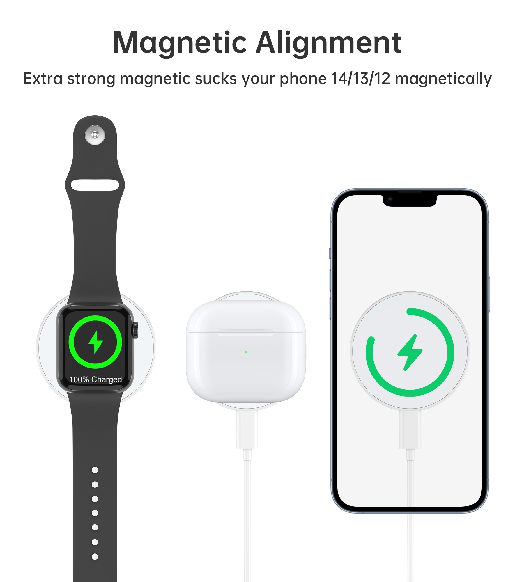 - Supports charging of iPhone, AirPods, and Apple Watch simultaneously