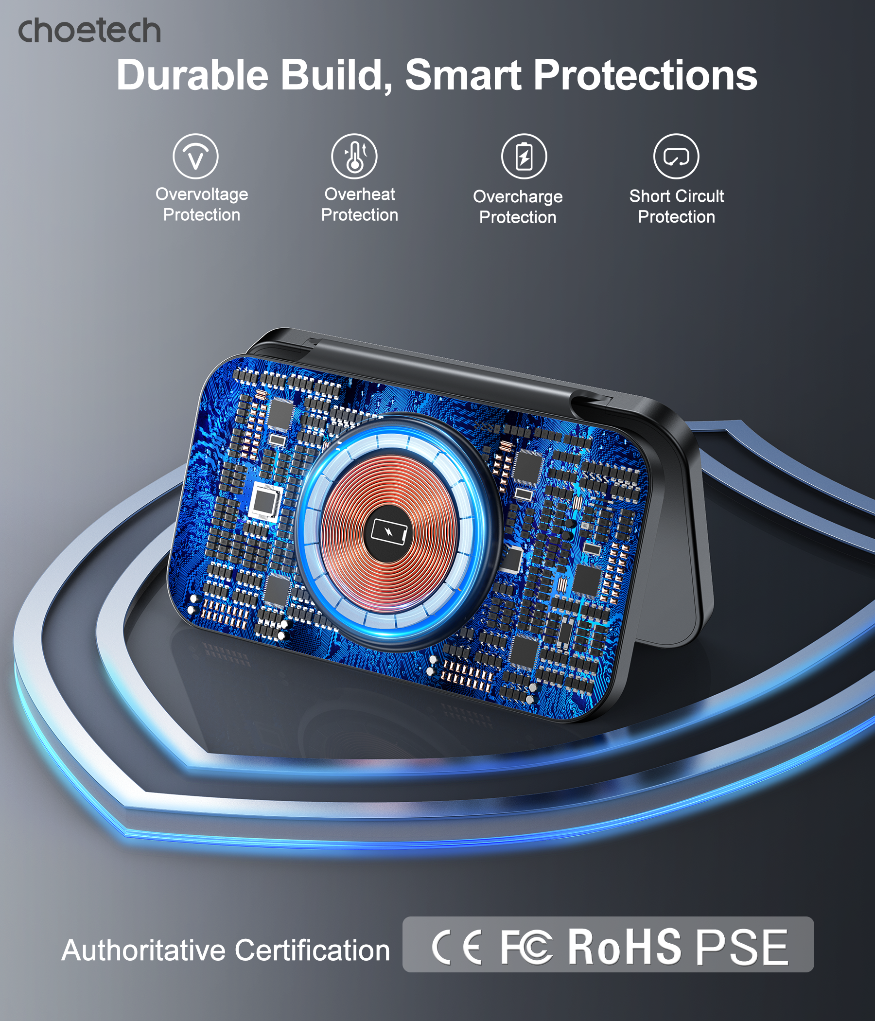 - Multiple charging modes with power outputs of 10W, 7.5W, 5W, and 2.5W for stable performance