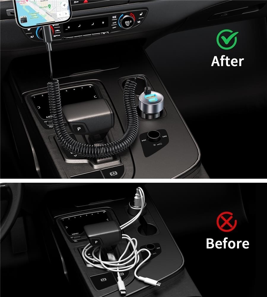 This 65W 3-Port Fast Car Charger provides efficient charging for multiple devices simultaneously. It features a stretchable Type-C cable and multiple output options to support various fast charging protocols, ensuring quick and reliable power delivery during your travels.