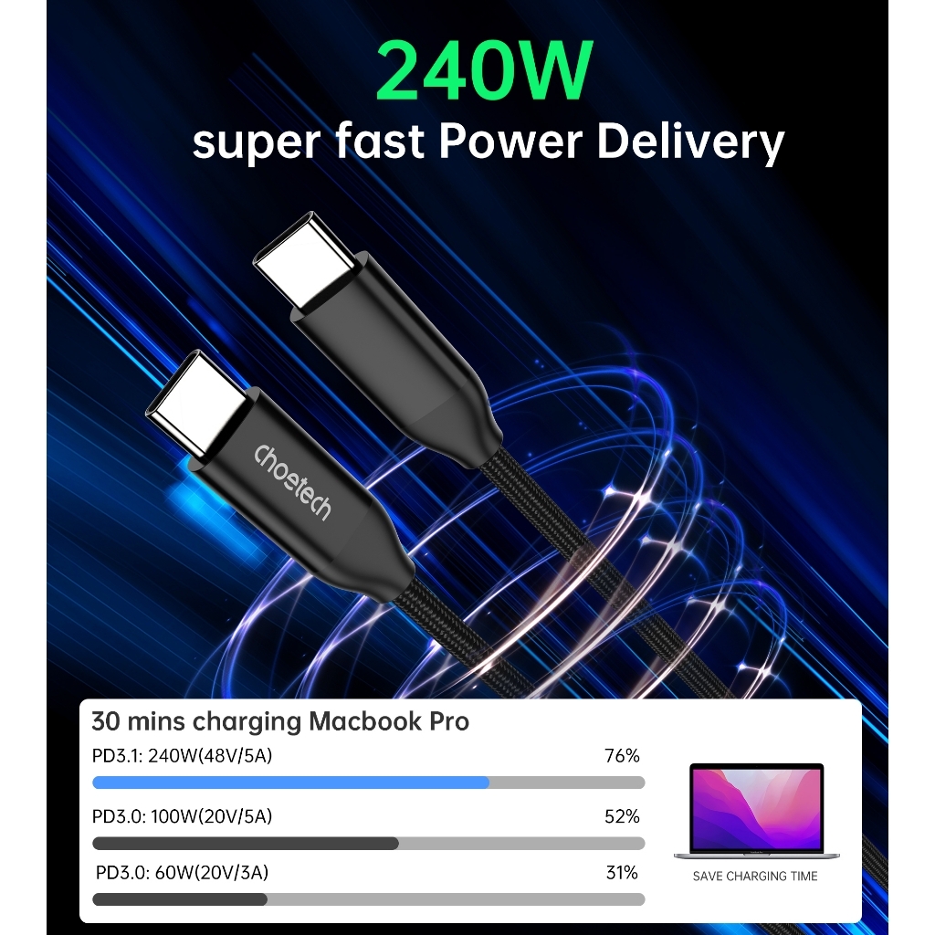 CHOETECH XCC-1035 USB-C M to M PD3.1 240W Super Fast Charging Cable 1M