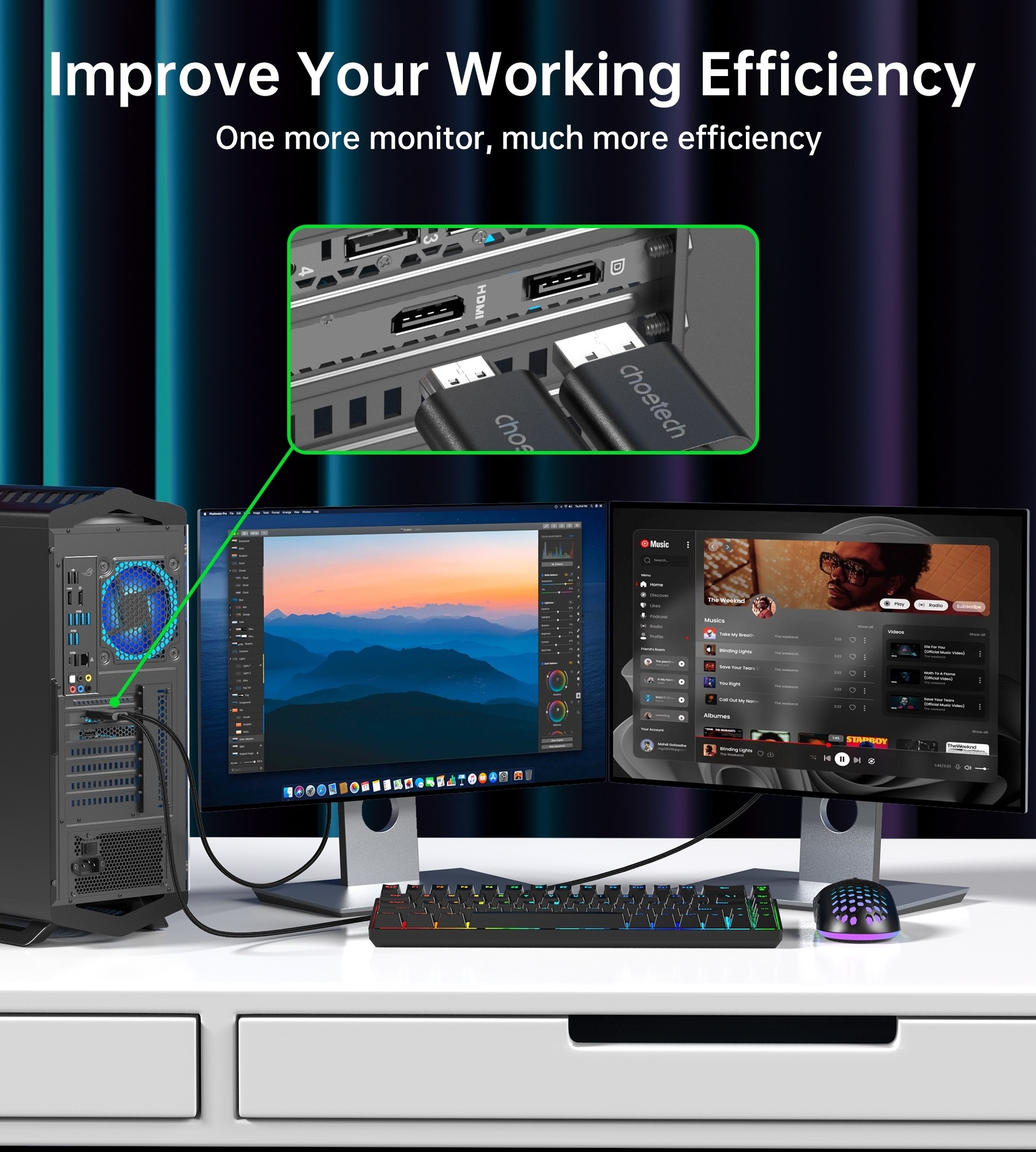 • Compatible with DP 1.2 and HDMI 2.0 standards