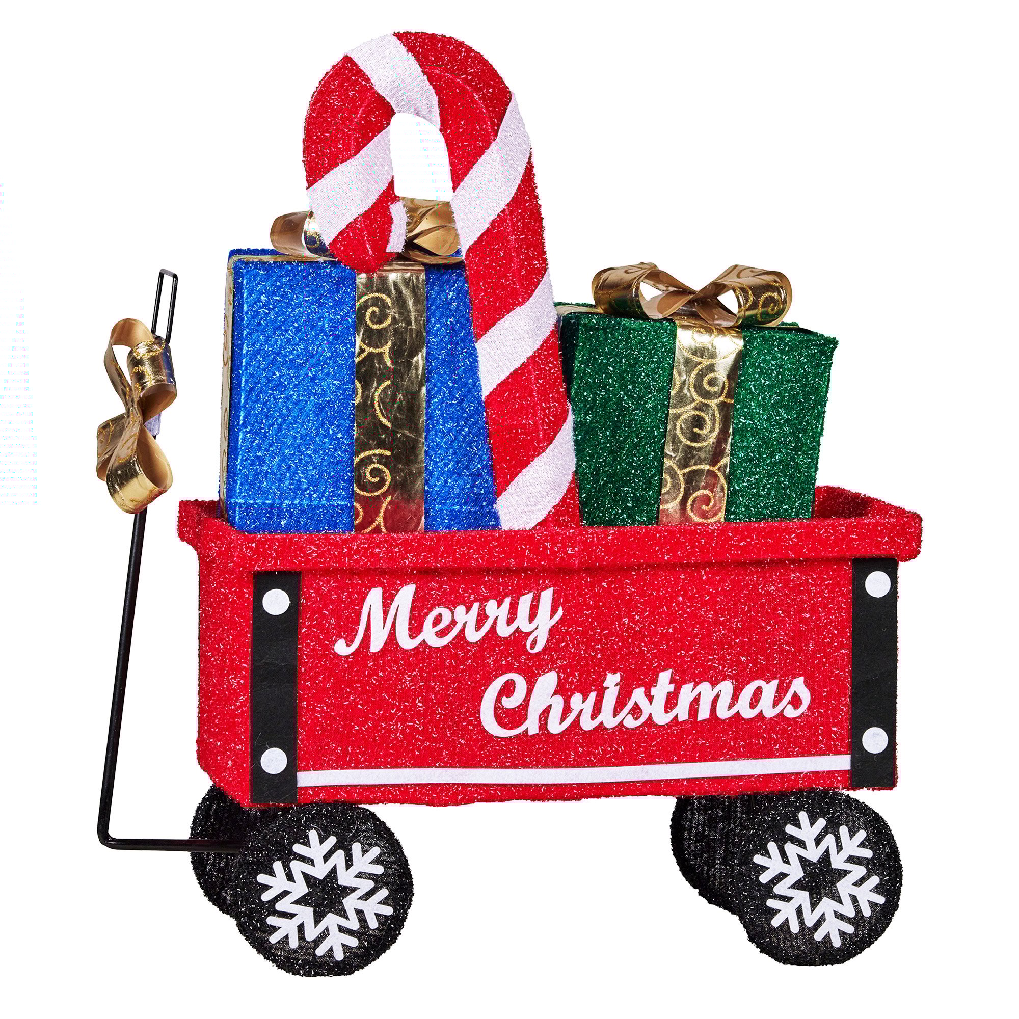 Christabelle Christmas Cart Display w/Candy Cane & Presents Warm White LED Lights Wire Frame Structure Indoor & Outdoor