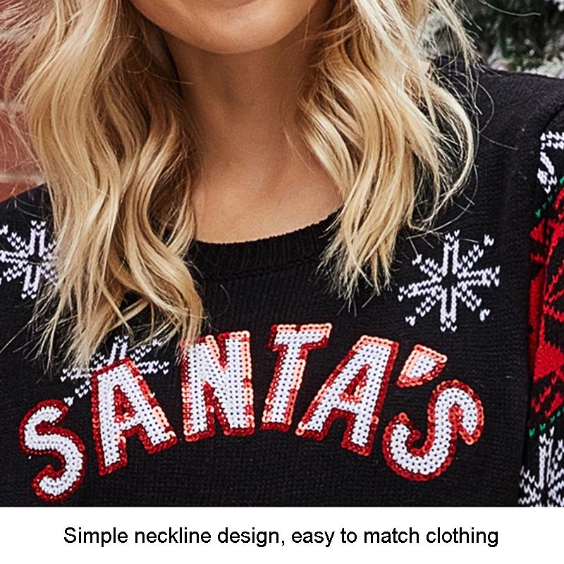 Women Christmas Sweater Sweet Loose Pullover Knit Sweater Black - M