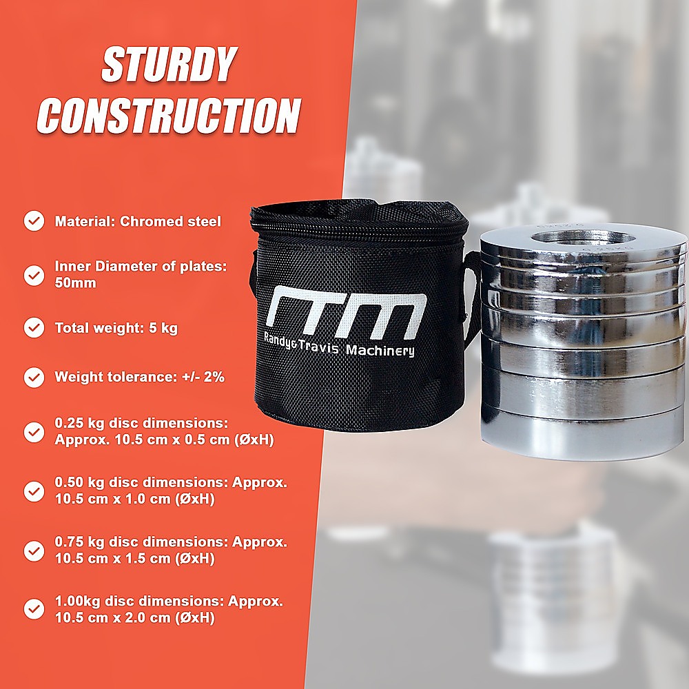 - Quantity: Four pairs of discs in 0.25 kg, 0.5 kg, 0.75 kg, and 1.0 kg increments