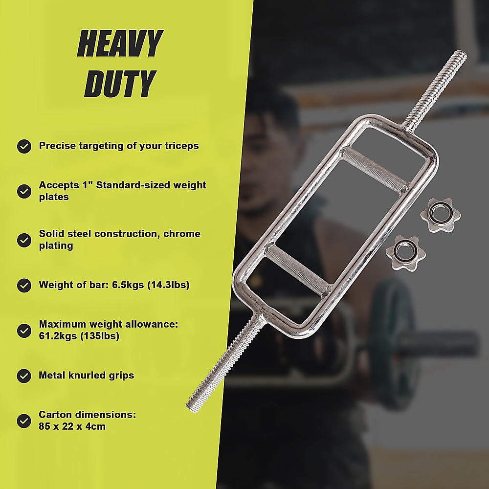 Chrome Tricep Bar Barbell Heavy Duty with Spinlock Collars