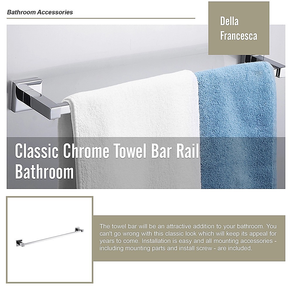 This classic chrome towel bar rail is a simple, elegant, and affordable addition to your bathroom. Its timeless design ensures it remains attractive and functional for years to come. Easy to install, it includes all necessary mounting accessories and an owner’s manual for guidance and care instructions.