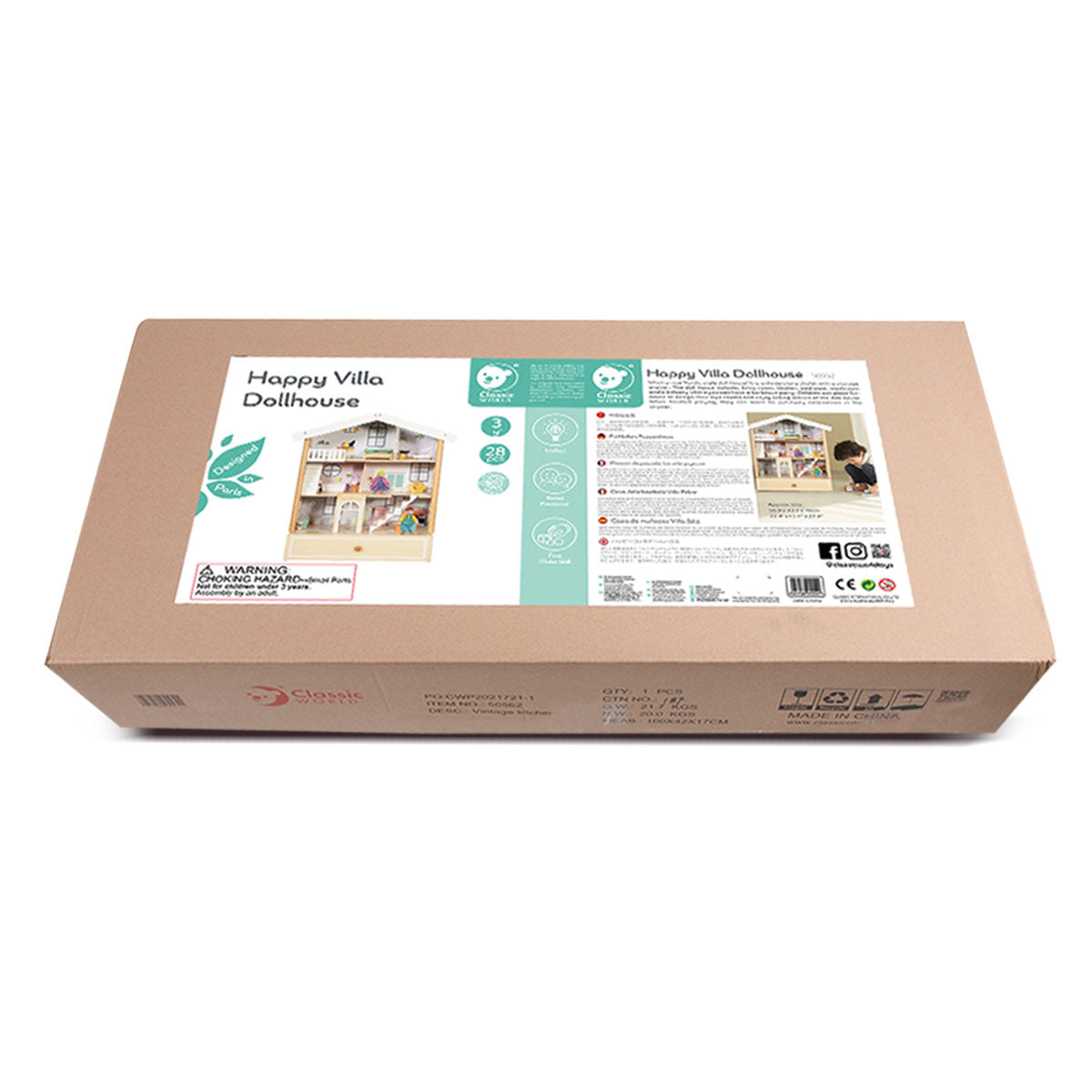 This dollhouse offers a charming and engaging play environment for children, combining durable materials and thoughtful design. It is suitable for children aged 3 and above, providing a safe and imaginative space for role-playing and creative activities.