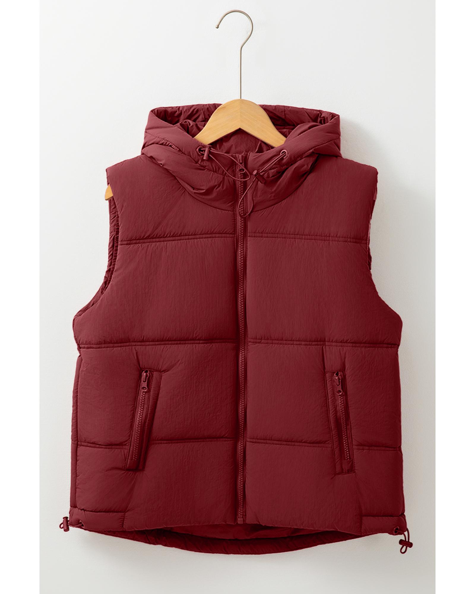 Clay Zip-up Side Pockets Hooded Puffer Vest – L