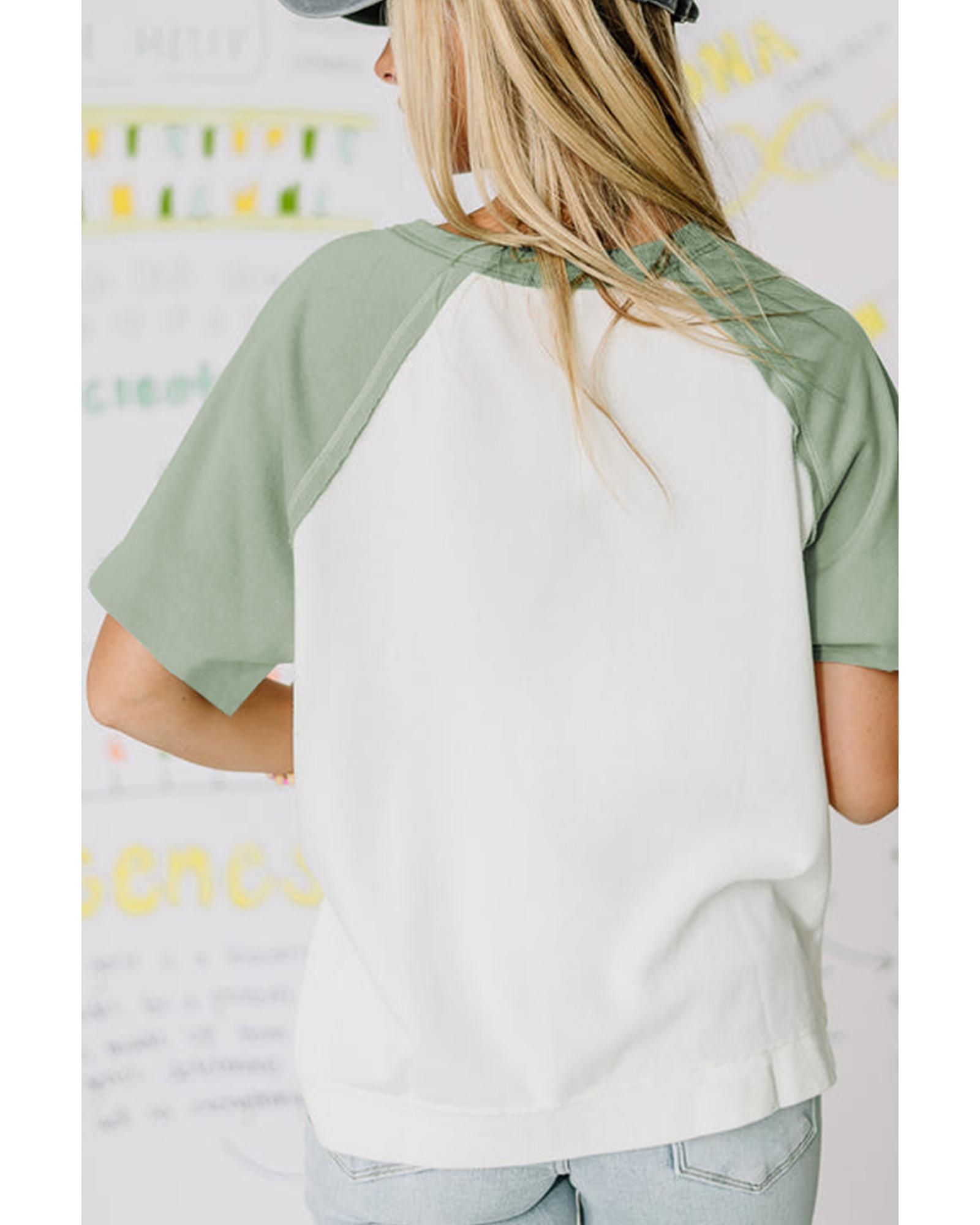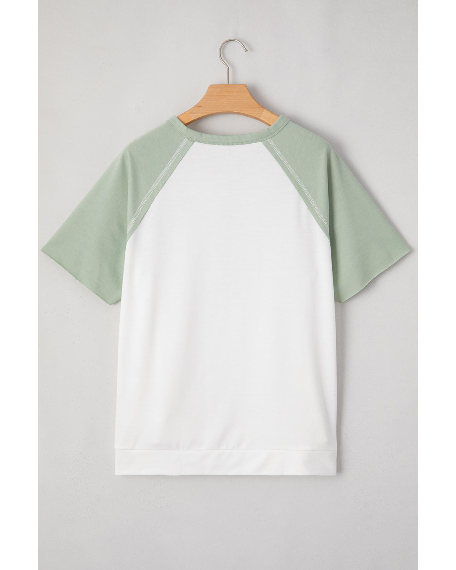 This stylish T-shirt features a colorblock design with a casual yet fashionable look. The raglan sleeves and half button placket add trendy details, making it suitable for a relaxed and comfortable lifestyle. The high-low hem enhances its modern silhouette, while the high elasticity ensures a comfortable fit.