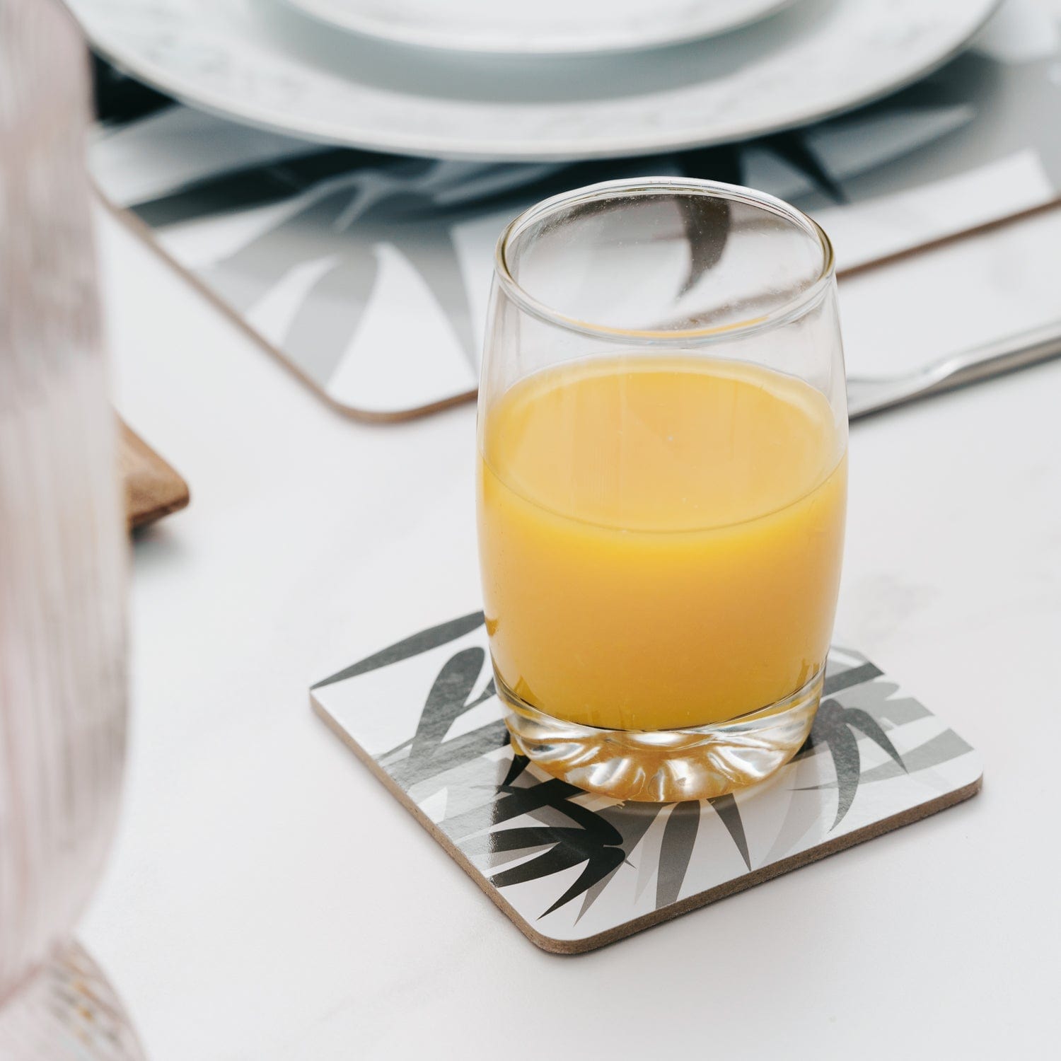 This set of four MDF coasters features a bamboo design that effectively insulates against heat up to 85??C. They help prevent marks and scratches on delicate surfaces, making them a practical addition to any table setting. The coasters are finished with a wipe-clean lamination for easy maintenance.