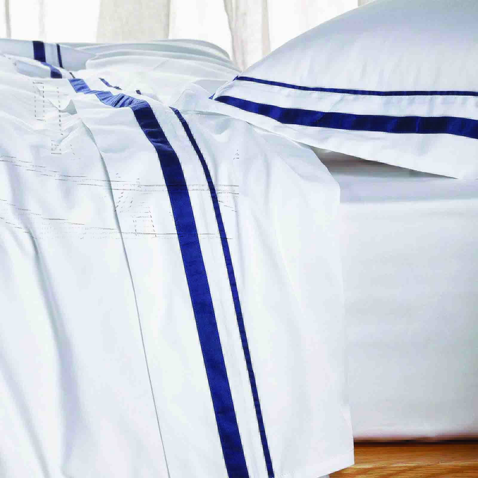 Cloud 1000 TC Egyptian Cotton White Navy Deep Queen Sheet sets by Renee Taylor