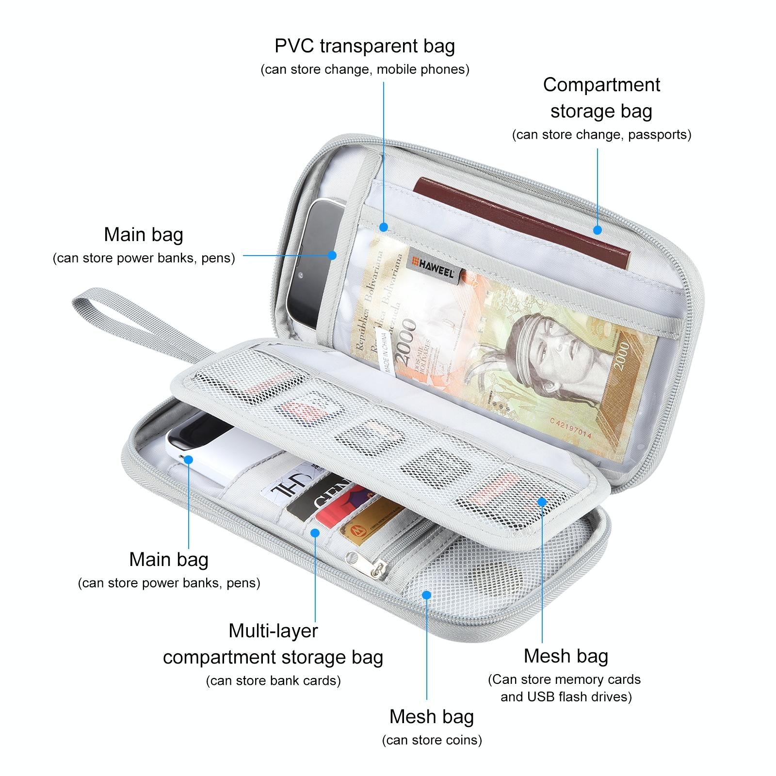 - 1 x Clutch Bag for Passports, Cards, and Documents in Grey