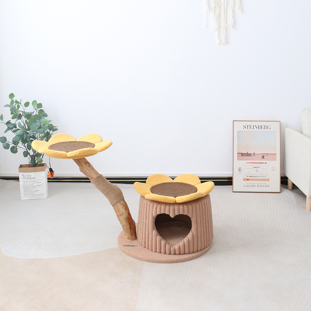 - Sunflower-themed cat tree encourages climbing, scratching, and playing activities.