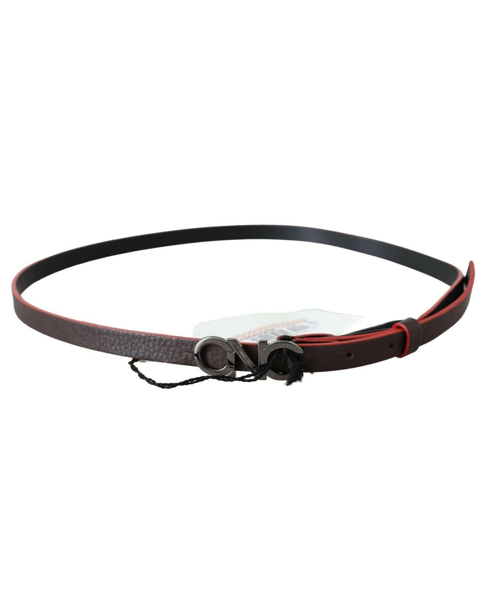 This leather belt features a sleek solid pattern design, making it a versatile accessory suitable for various outfits. Crafted from high-quality leather, it offers durability and a refined appearance. The belt is available in classic maroon and black colors, with logo details that add a touch of elegance. Its length is 85 cm, providing a comfortable fit for most women.